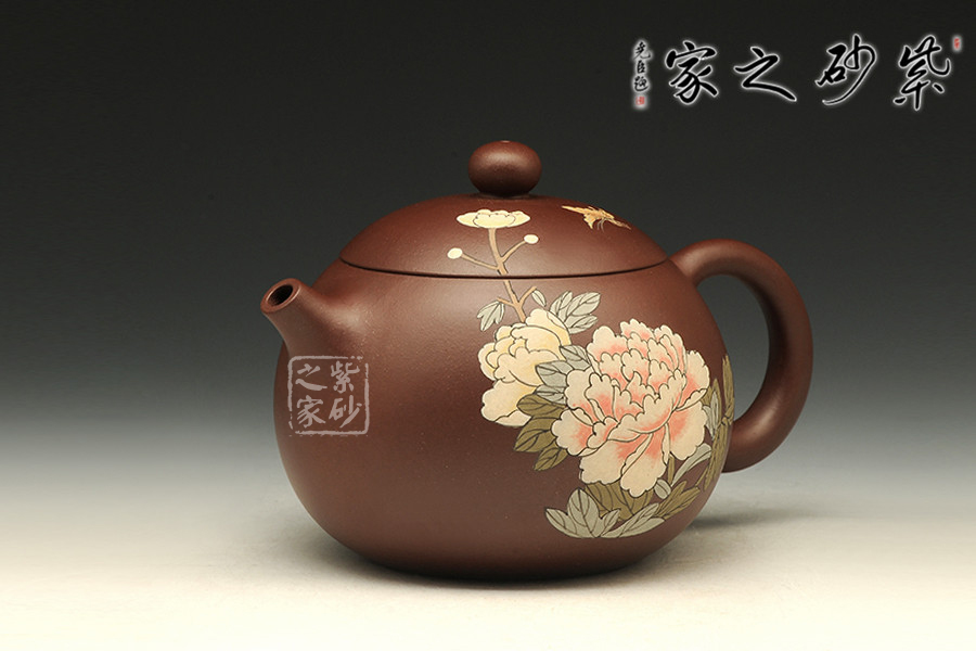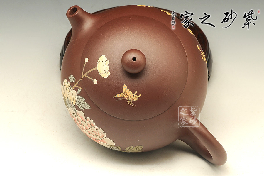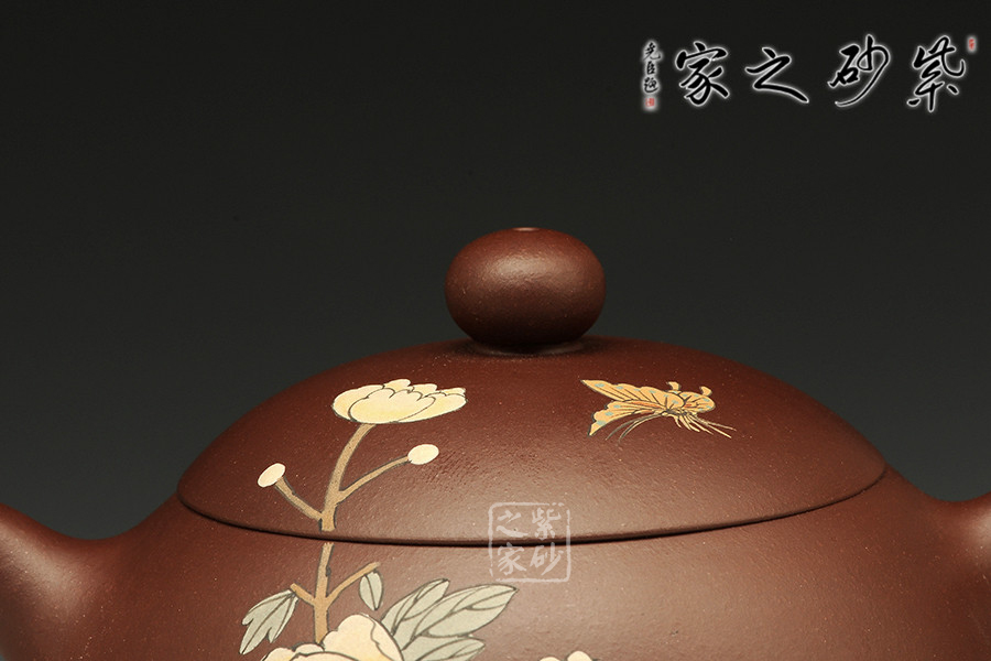 西施壺就像是一個(gè)西子湖畔的江南美女,其嬌羞之狀我見尤憐,泡茶時(shí),壺的小嘴流出的茶水柔弱無力,仿佛是弱柳扶風(fēng)般的顰眉西施,令人愛不釋手;此壺采用稀有血龍砂精制而成,質(zhì)感質(zhì)樸細(xì)膩,淡雅溫和;壺身略扁,卻又更顯圓潤(rùn),截蓋設(shè)計(jì)上下忽然一體,壺蓋、壺身銜接緊密,不易溢出,一粒壺鈕碩大無比;短嘴直流而出,更見嬌小可愛,倒把設(shè)計(jì)重心下移,同時(shí)壺把底端與壺嘴前后呼應(yīng),更添一種韻味。