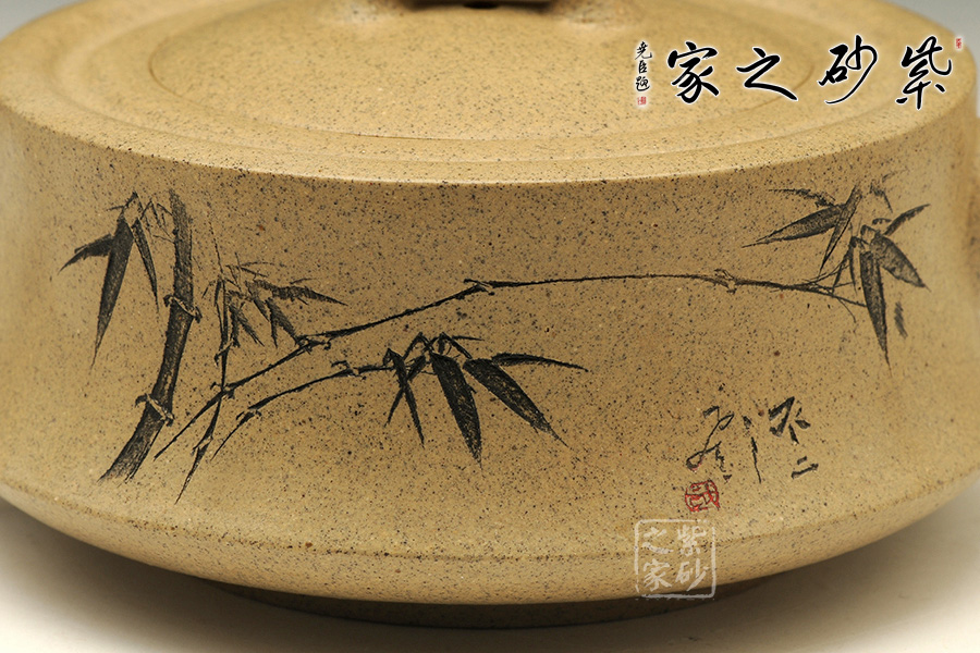此壺傳承經(jīng)典,端莊雅致,不失渾厚樸實,質(zhì)拙中顯高意,值得擁有。鈕嘴把竹節(jié)造型,直流嘴兩節(jié)竹節(jié)裝飾而成,弧鈕按在在略微鼓起的壺蓋之上,耳形提把為三節(jié)竹節(jié)裝飾。嵌蓋與整壺完美融合,壺腹圓滑內(nèi)陷,似竹節(jié)造型,整壺呼應。色澤明亮,鮮明淡雅,整款壺竹韻清疏。