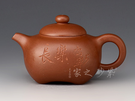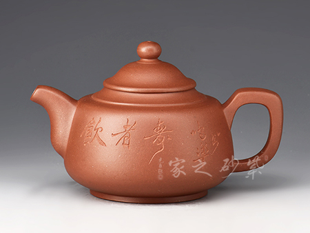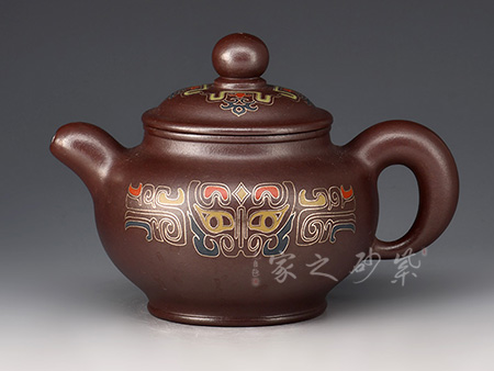 擅于自制自銘,精于雙色泥料制壺,裝飾手法玩裝金銀鑲嵌、堆泥貼花