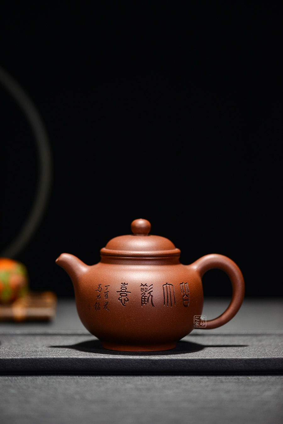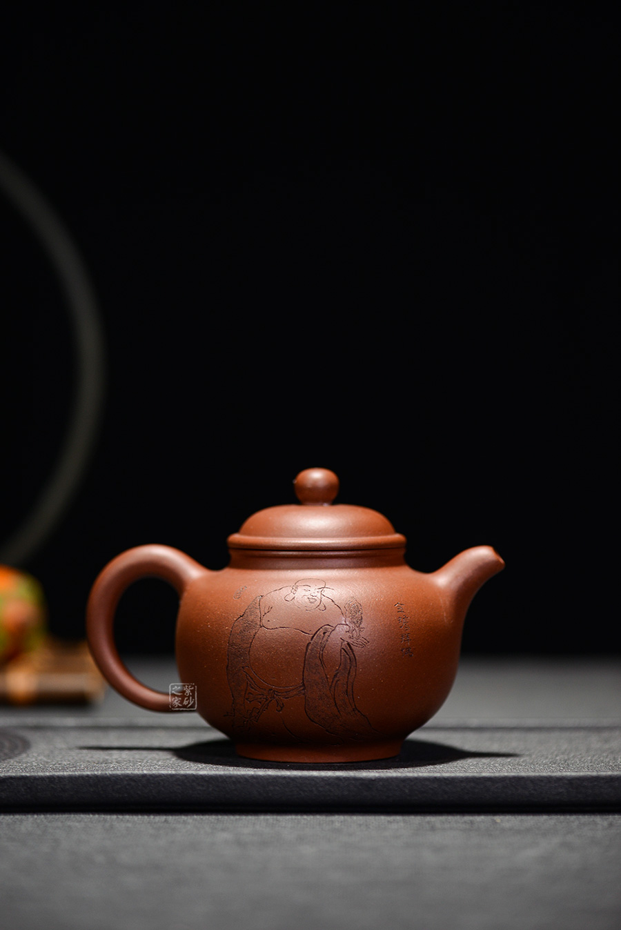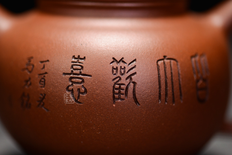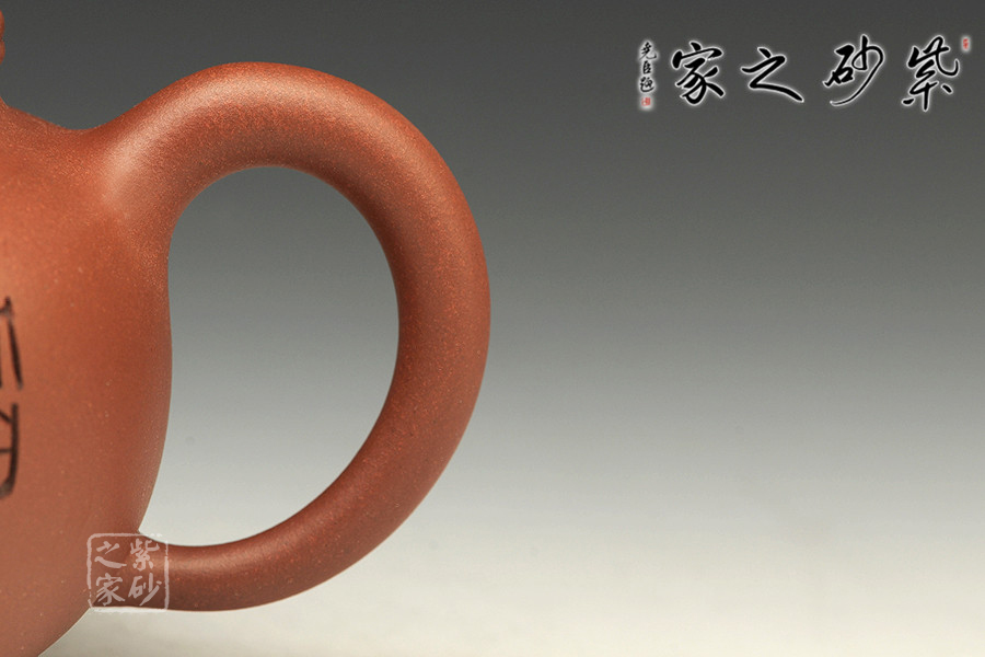 掇只,是一款傳統(tǒng)的經(jīng)典器型,整體形如蓮子,是由多個球形疊加而成。該壺有著渾圓挺括的壺身,半圓的壺蓋,壺鈕與壺體呼應(yīng),呈扁圓。線條流暢,比例得當(dāng),壓蓋略微渾厚,點(diǎn)線之間盡顯魅力,子母線口蓋吻合嚴(yán)密,骨肉亭勻,簡練大方,制作頗見功力;一彎流嘴胥出,柔美之姿明顯,壺柄圈大,略上挺,形成一圈圓潤飽滿的弧線,樸雅大方,加底設(shè)計將壺身襯托得更加亭亭玉立。