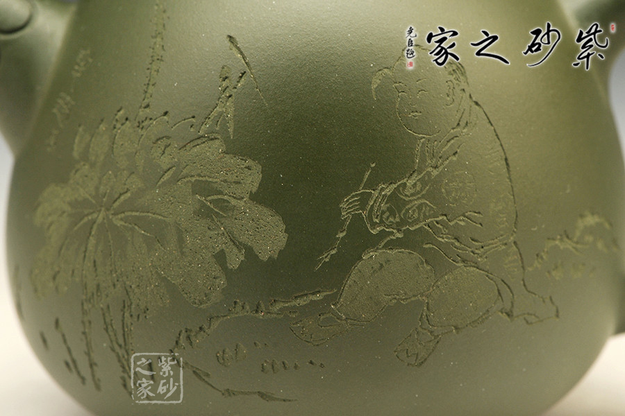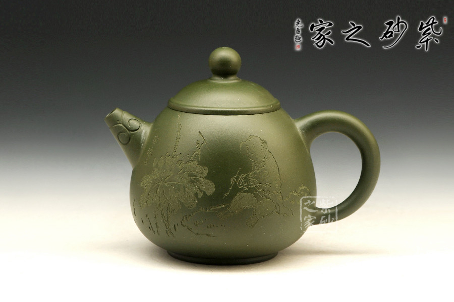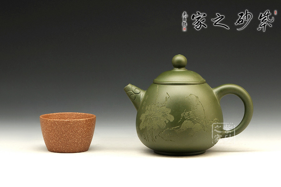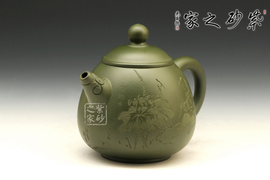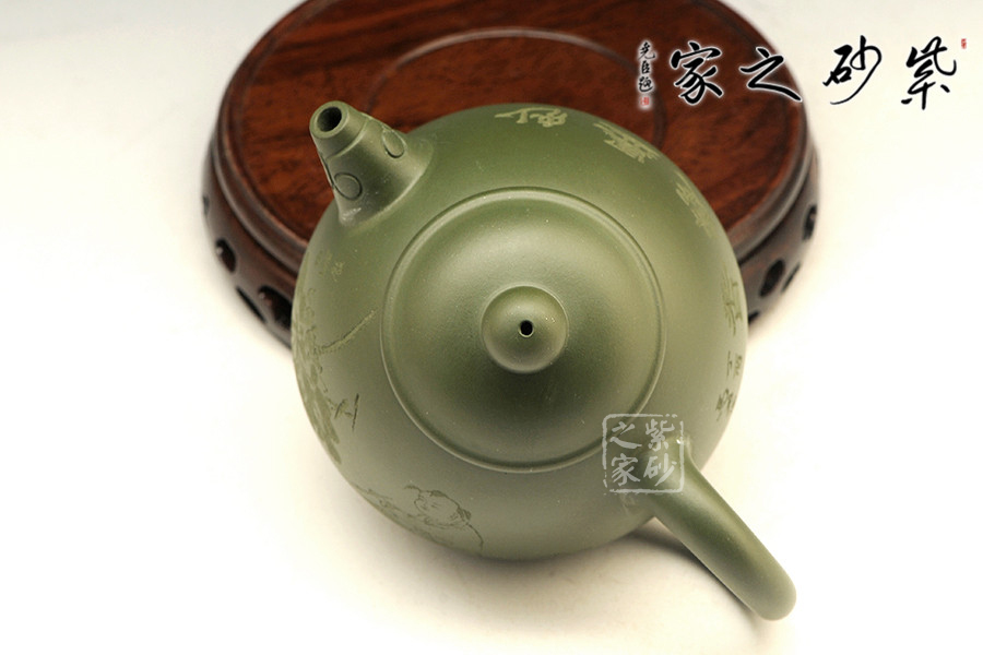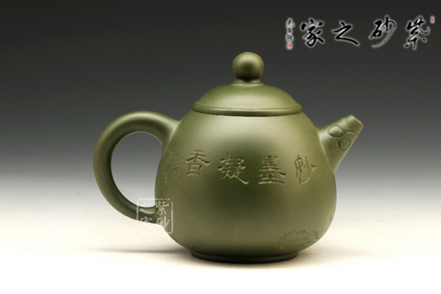 特點:泥色特異,青藍色中略泛綠光,清秀獨特;稍一泡養(yǎng),色調(diào)更形穩(wěn)實,溫潤透明,變化甚巨,玩賞深具成就感。