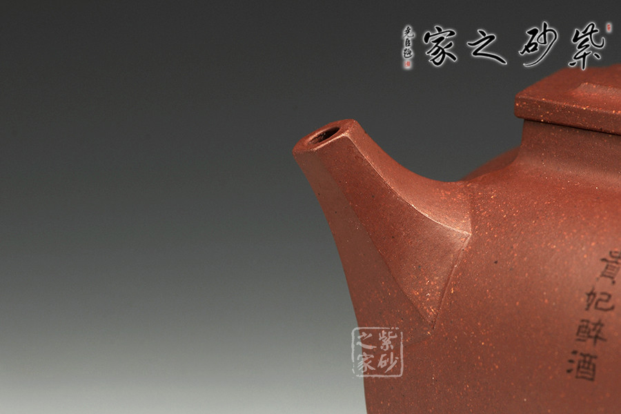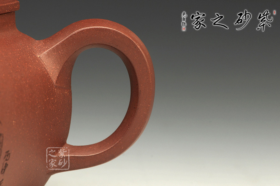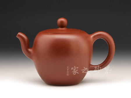 此款壺兼具傳統(tǒng)意蘊與鮮明現(xiàn)代意味的紫砂作品,淳樸率真、古雅大氣,作品既有古樸穩(wěn)重的傳統(tǒng)氣息,又不乏明快清爽的現(xiàn)代風(fēng)貌。它線面清晰、力度透徹、風(fēng)姿峻峭,不加雕飾卻每一個細(xì)節(jié)都交代得干脆利索。壺肩之處線條順勢而下,猶如美女香肩,順滑柔美,而壺蓋的直線和壺身弧線的交錯極具剛?cè)嵯酀膹埩?