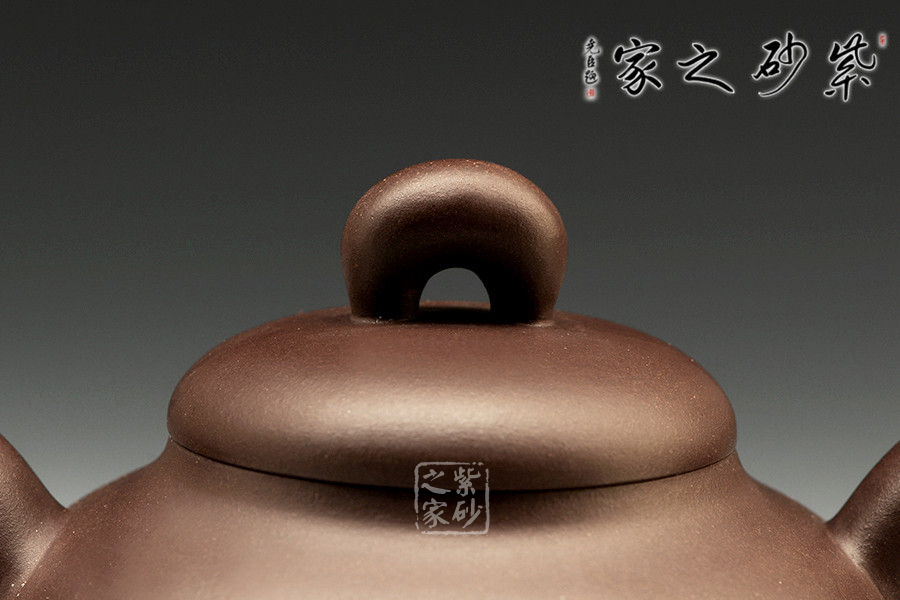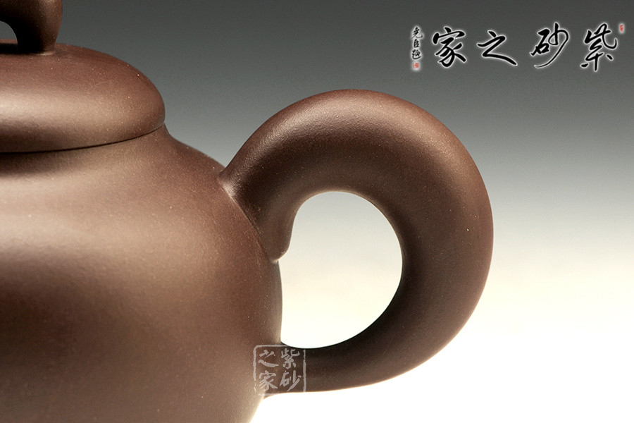 圓滿壺為光素器,壺身飽滿為圓球,線條飽滿清晰,器形簡練,表面光潤,沒有半點裝飾,顯得十分莊重大方,質(zhì)地溫潤細膩,握在手中柔和舒適。壺身比例協(xié)調(diào),氣韻生動,整體挺拔端莊,截蓋平滑工整,細膩中有流光閃動。橋型壺鈕、彎流與耳把折轉(zhuǎn)處異常飽滿,重心略向上若自然生成。同整體來看,此壺氣質(zhì)精巧自然,越是把玩就越是喜愛。