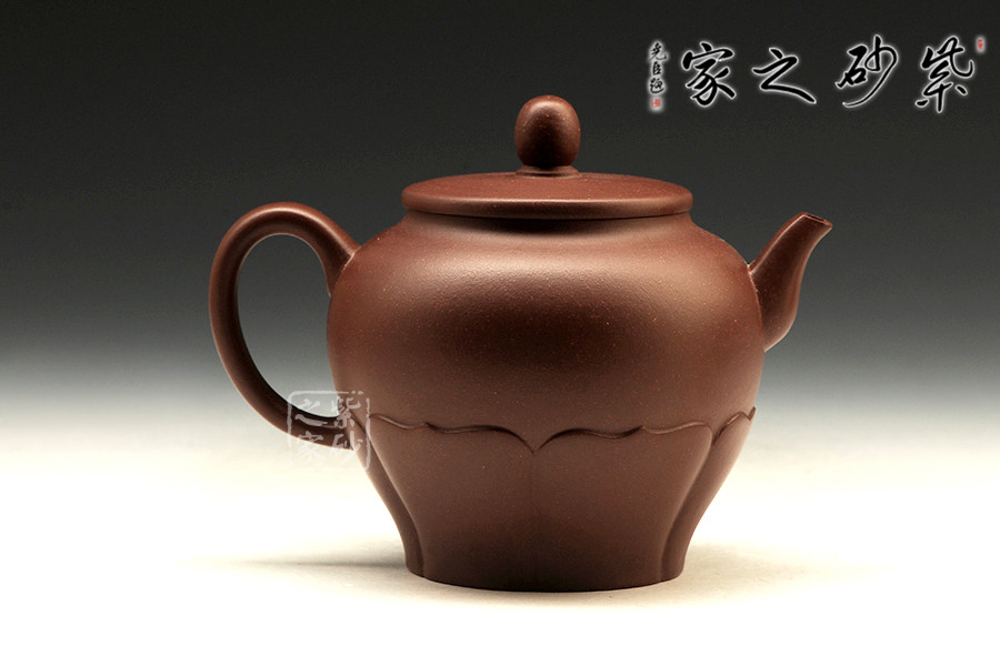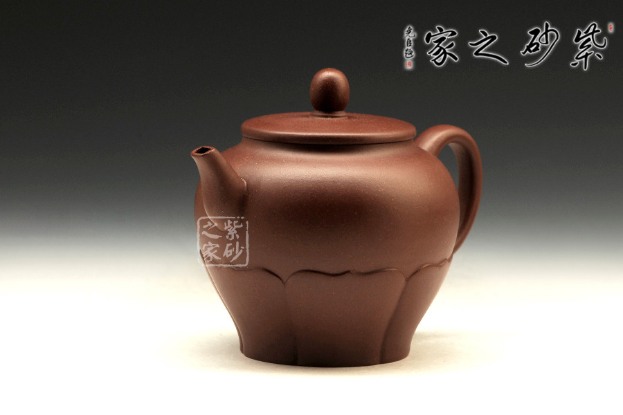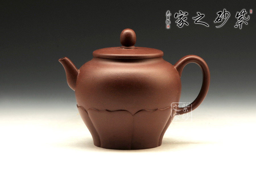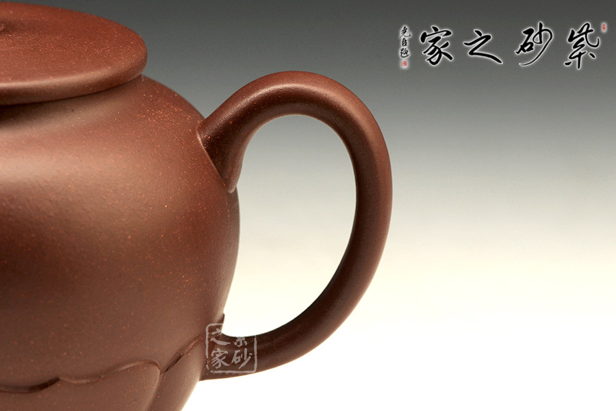 此蓮花壺造型新穎,紋理清晰,壺身修長(zhǎng),坡肩過渡圓潤,上斂鼓腹,下弧捺底,可見挺拔身姿。圓柱鈕挺立,平蓋壓口,嚴(yán)絲密縫,泡茶不外溢。壺身之上包裹瓣瓣蓮花,呈盛開狀,雕刻精細(xì),線條優(yōu)美。彎流胥出有力,優(yōu)雅而爽利,嘴頭齊整,出水干凈不涎水。圈把與嘴頭同高,二者相呼應(yīng),極為和諧。原礦紫泥制作,胎質(zhì)細(xì)致,古樸敦實(shí),質(zhì)堅(jiān)潤澤,出茶味醇厚,容易泡養(yǎng)!