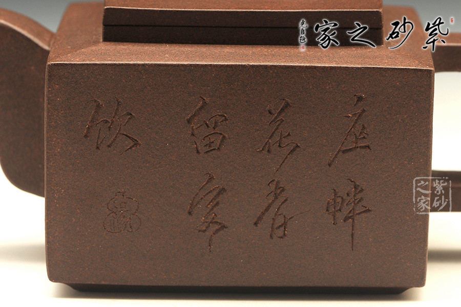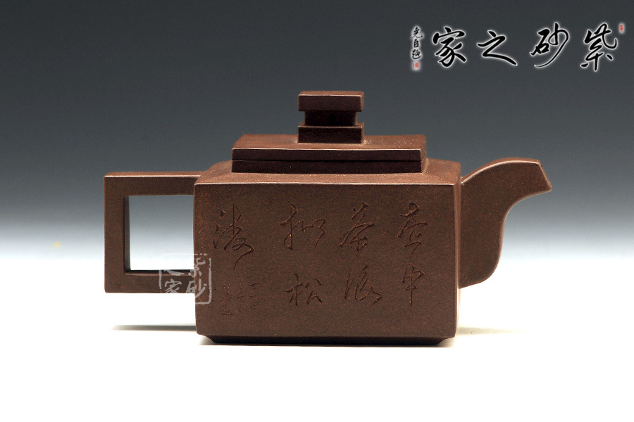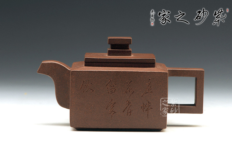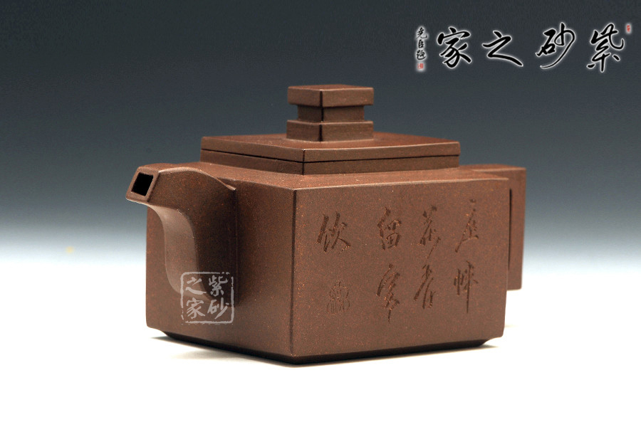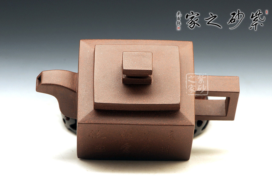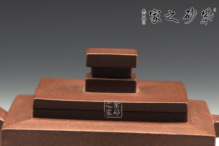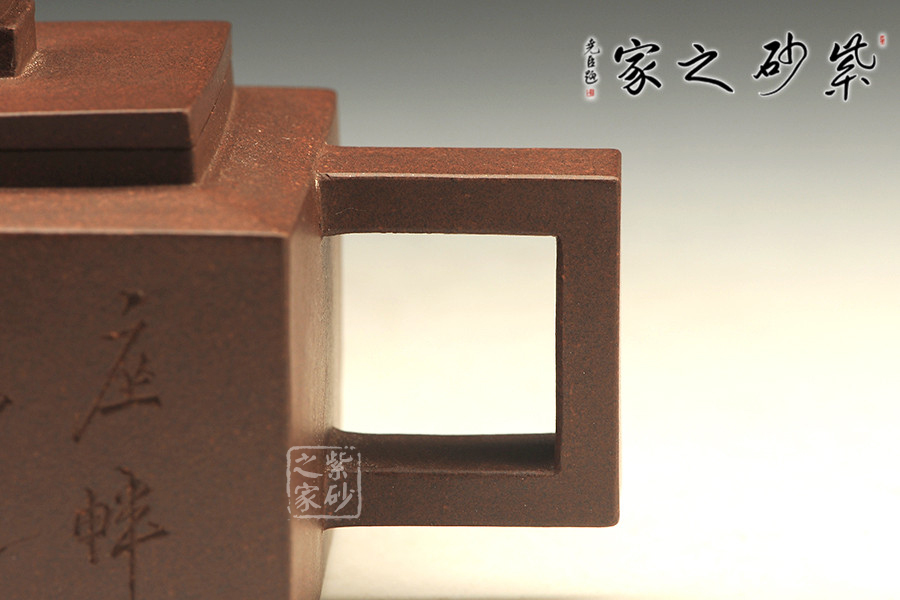 整體造型比例協(xié)調(diào),線面挺括有力;輪廓分明,全器氣勢(shì)挺拔;英姿颯爽,成就紫砂方器之美!橋鈕、方形壺把、方形壺身,整款壺棱面挺括,線條剛硬,猶如將軍風(fēng)范。壺鈕平整,壺蓋也十分平整,做工一絲不茍,極為精細(xì),棱線清晰分明,干脆利索,寓意善惡分明,將方器特色表達(dá)得淋漓盡致!
