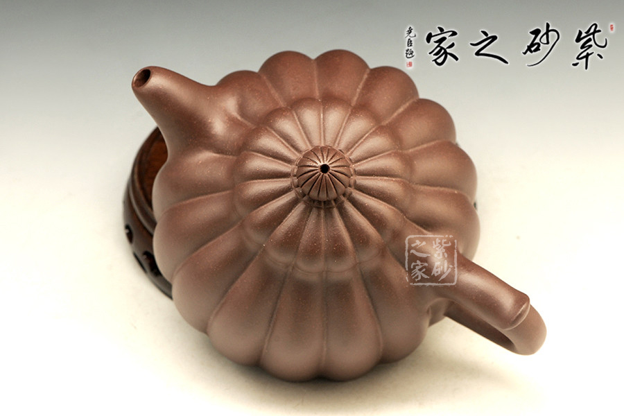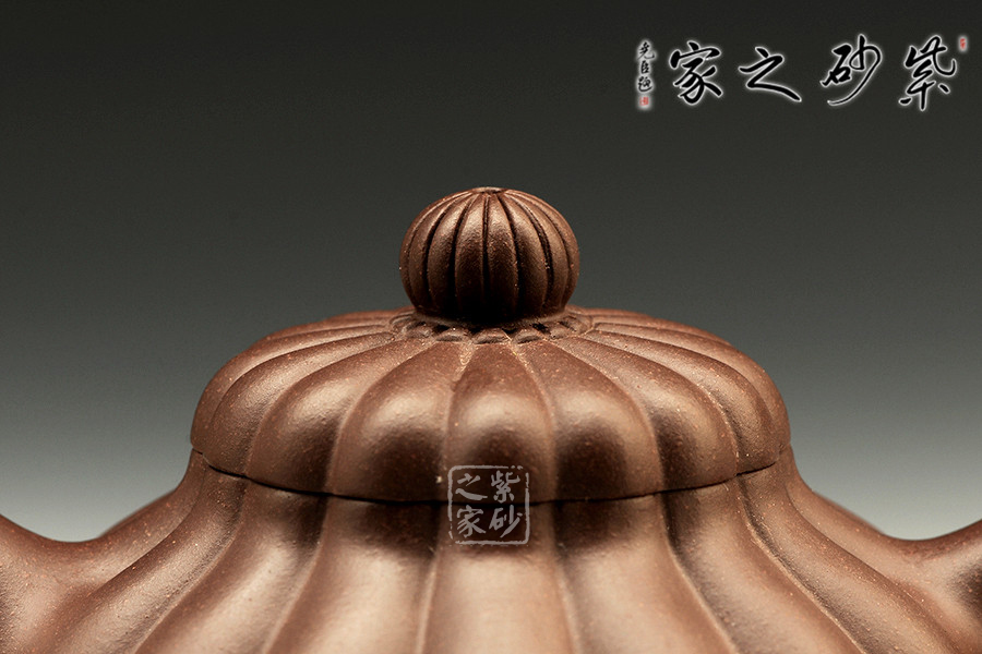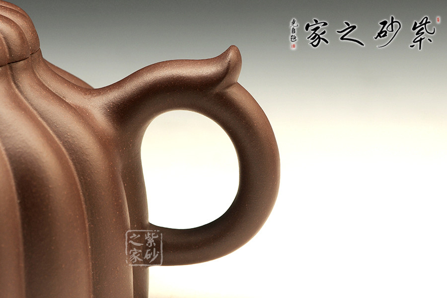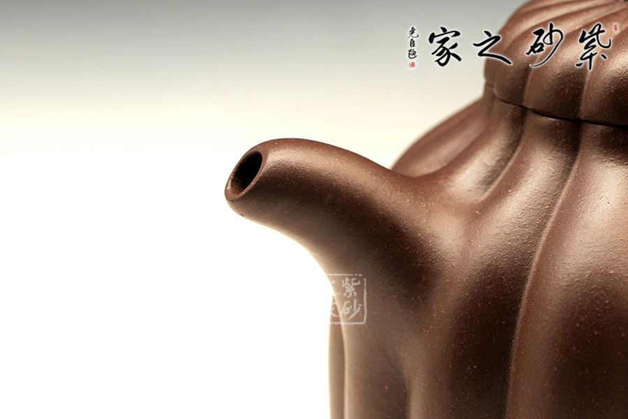 此壺成型難度高,造型挺拔,制作精細(xì)規(guī)整,做工嚴(yán)謹(jǐn),每一個瓣棱之間排列勻稱,飽滿,韻味濃郁,無生硬之處,線條明晰工整,轉(zhuǎn)折合度,筋囊飽滿圓潤。此壺造型優(yōu)雅寫意,筋紋從壺鈕延伸至底,紋理清晰,深淺自如,明暗分明,壺蓋與壺身上下貫通,渾然一體,壺蓋可以任意調(diào)換角度,與壺口配合嚴(yán)密,分毫不差,展現(xiàn)了點(diǎn)線面的最佳組合。