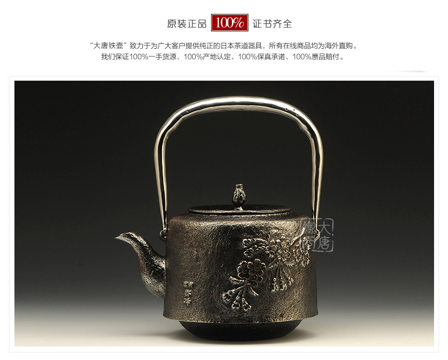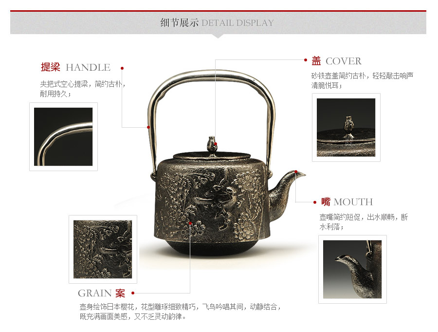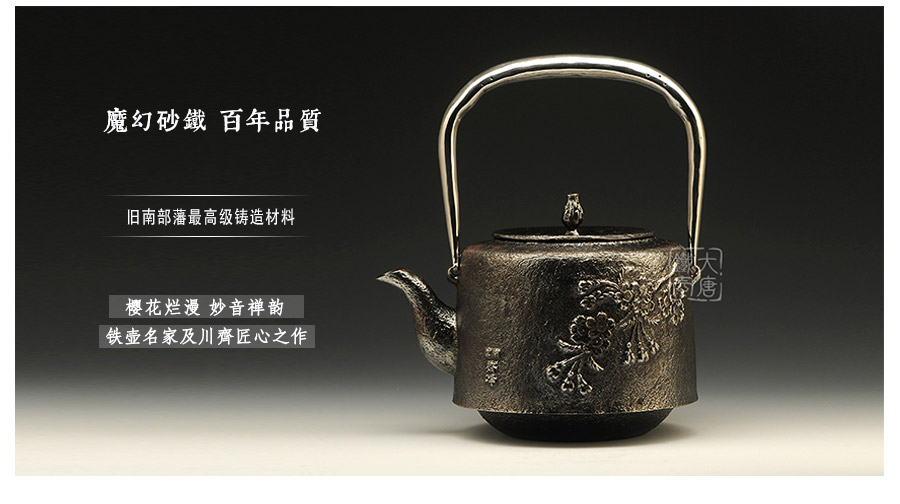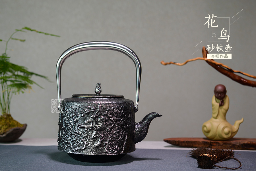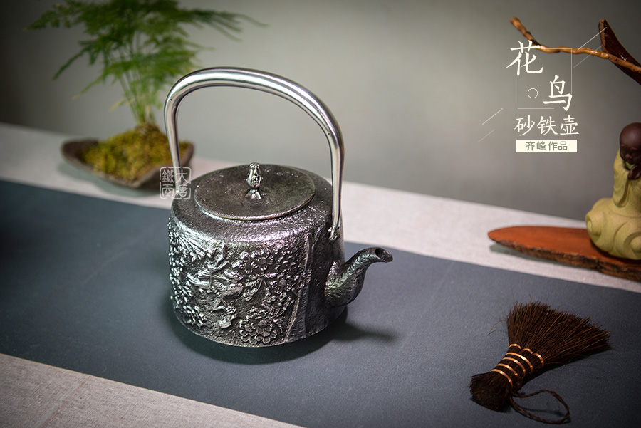 南部水澤名師及川齊匠心手作,采用日本最高級砂鐵原料砂鑄成型,壺身經(jīng)典花鳥紋飾,搭配夾把式空心提梁,簡約大方,品質(zhì)非凡。
