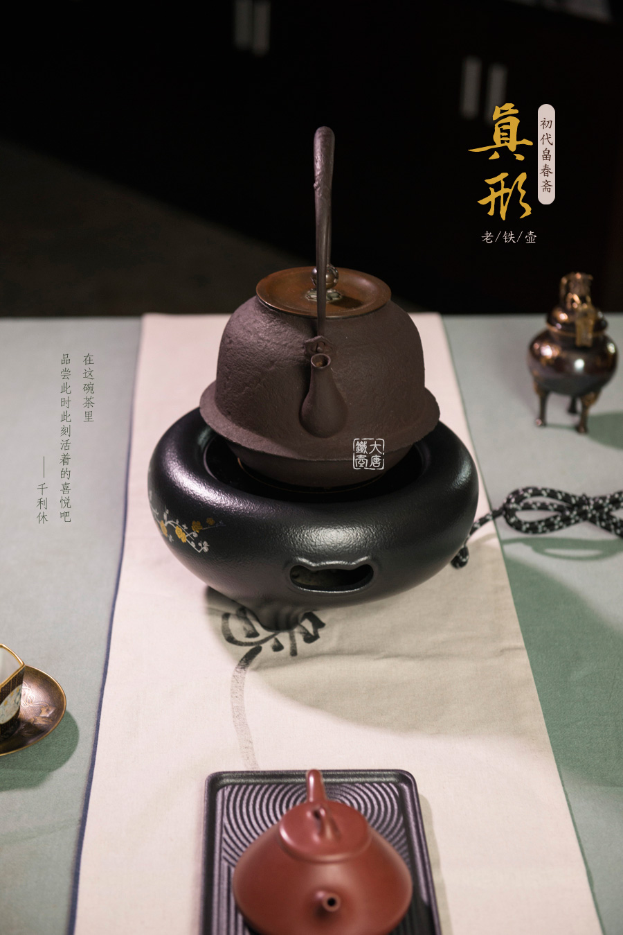 初代春齋典藏臻品,一模一具的燒型孤品,造型古樸簡(jiǎn)約,鐵肌細(xì)膩潤(rùn)和,雖無(wú)雕金錯(cuò)銀的奢華,但更顯古樸渾厚,品味非凡。