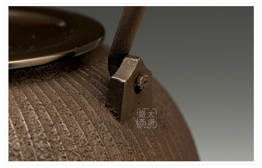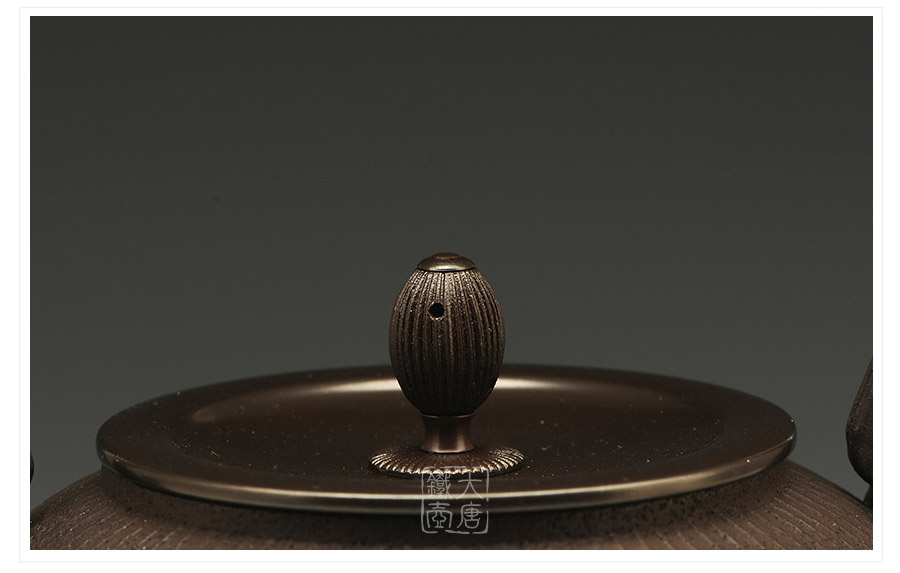 鐵壺名家三代春齋作品,經(jīng)典丸型,筋紋,整器端莊優(yōu)雅,雋永飄逸,搭配唐銅壺蓋,蟲蝕摘鈕,更顯雅致精巧。