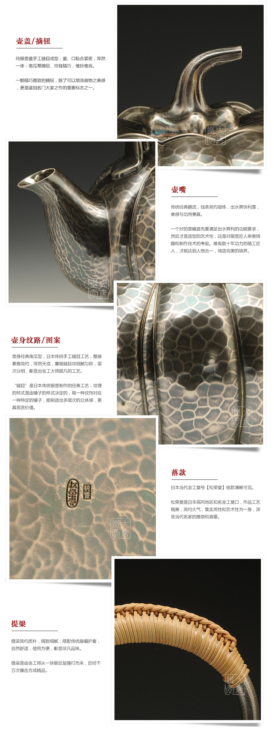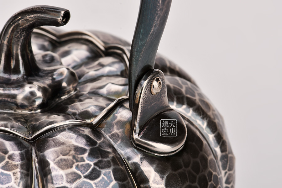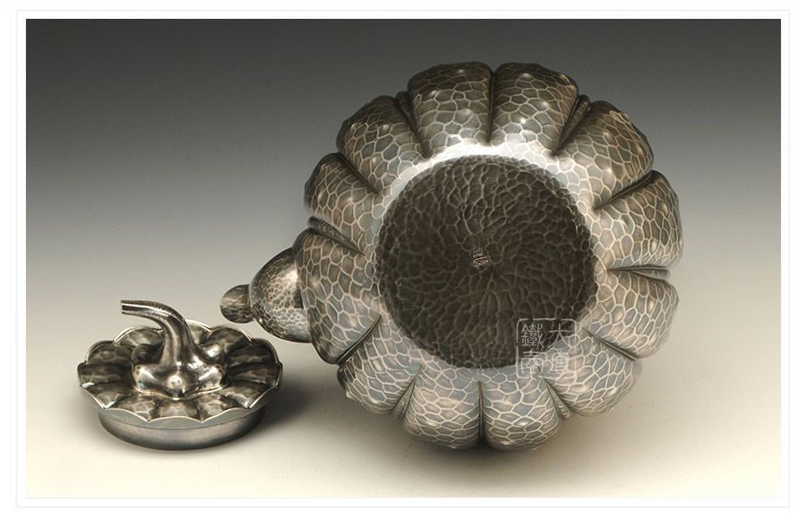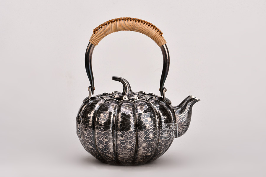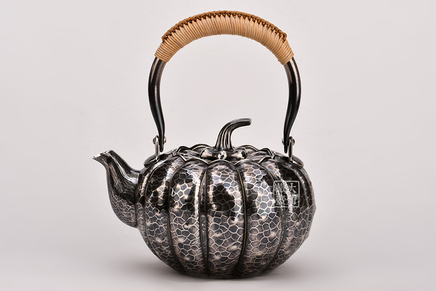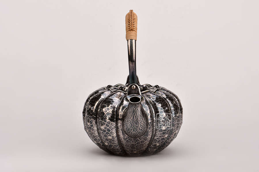 日本頂級金工堂號松榮堂匠心手作,經(jīng)典南瓜型,熏銀,傳統(tǒng)手工鎚目工藝,整器素雅簡約,惟妙惟肖,堪稱經(jīng)典。