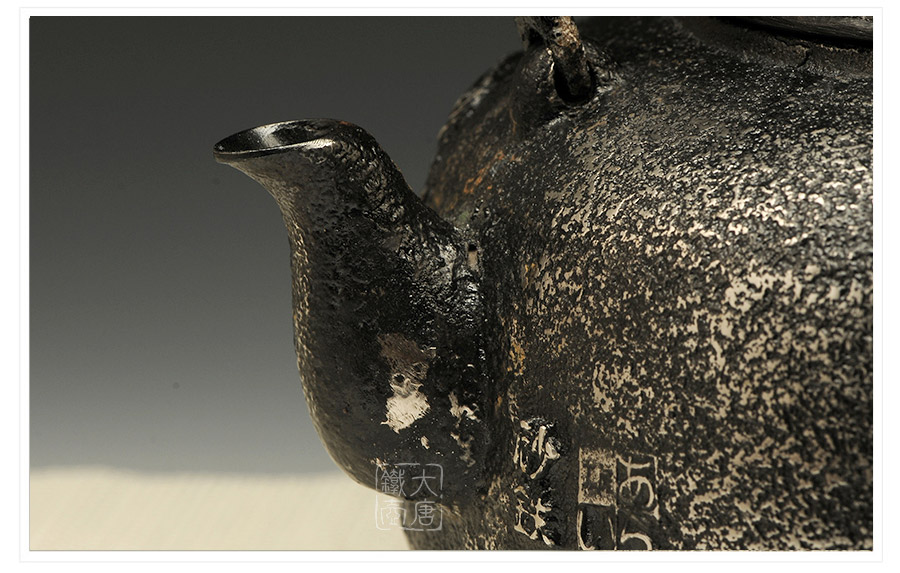 荒井工房的鐵瓶除了在鑄造工藝上有嚴(yán)格的規(guī)范和體系,在鐵瓶裝飾技術(shù)上也頗有建樹(shù)。除了傳統(tǒng)的印刻技術(shù)外,荒井工房還掌握了非常出色的金銀鑲嵌技藝,尤其以大片的鏨刻銀片最為出眾,這在山形當(dāng)?shù)靥每谥歇?dú)樹(shù)一幟。