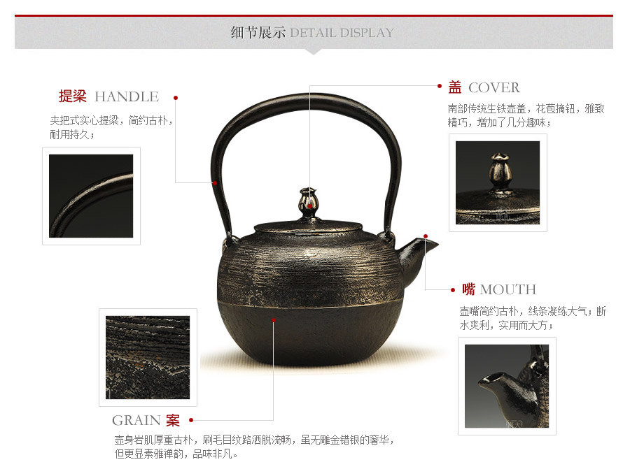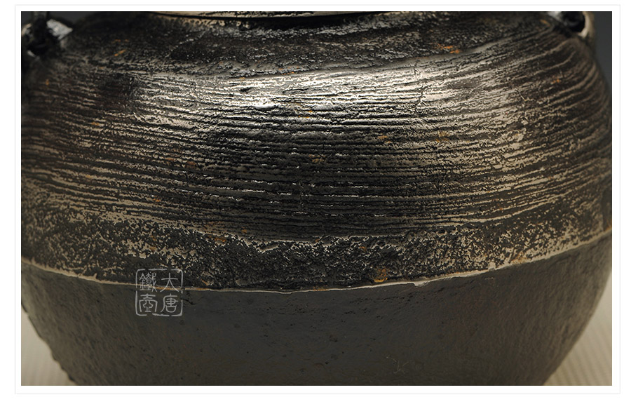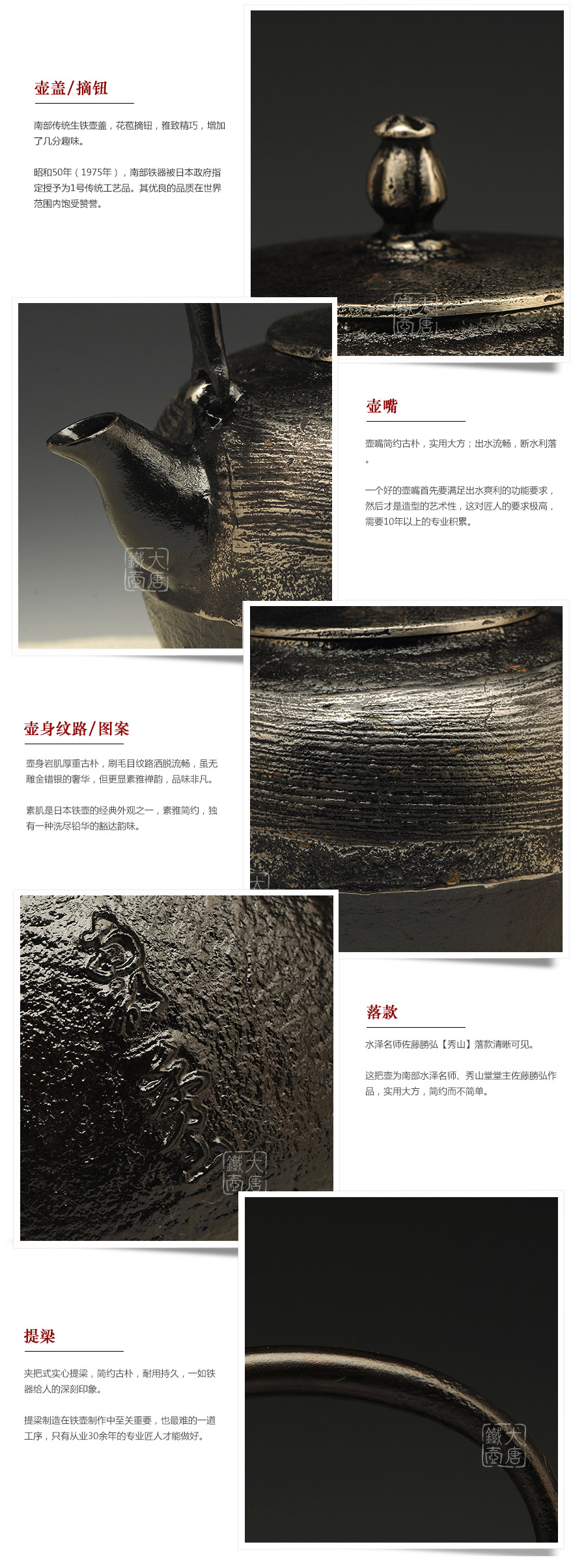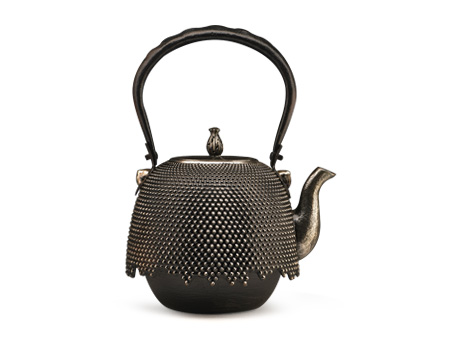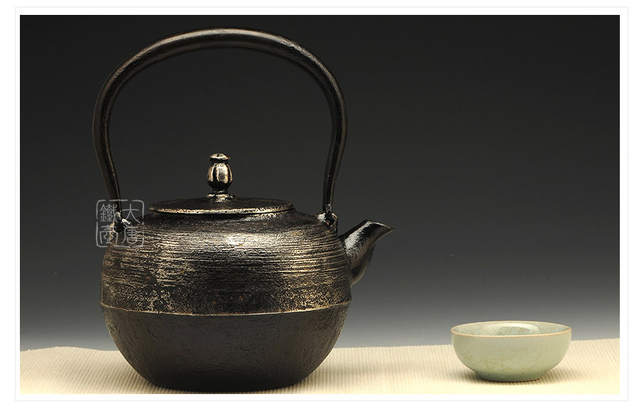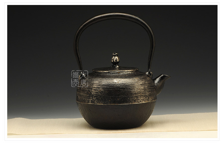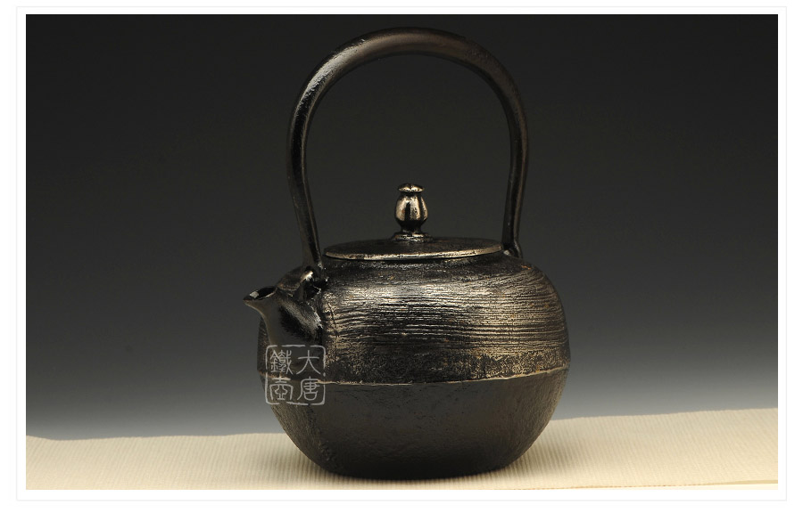 南部是鐵瓶的發(fā)祥地,御釜屋三代仁左衛(wèi)門將“手取釜”改造成鐵瓶,并固定了這種形式。所以從南部鐵瓶中可以明顯地看到茶釜的樣子。南部鐵器的追求古奧深沉的特點(diǎn),大多以黑色來裝飾鐵瓶的表面,以期達(dá)成如長(zhǎng)期受炭火熏燎的樣子。