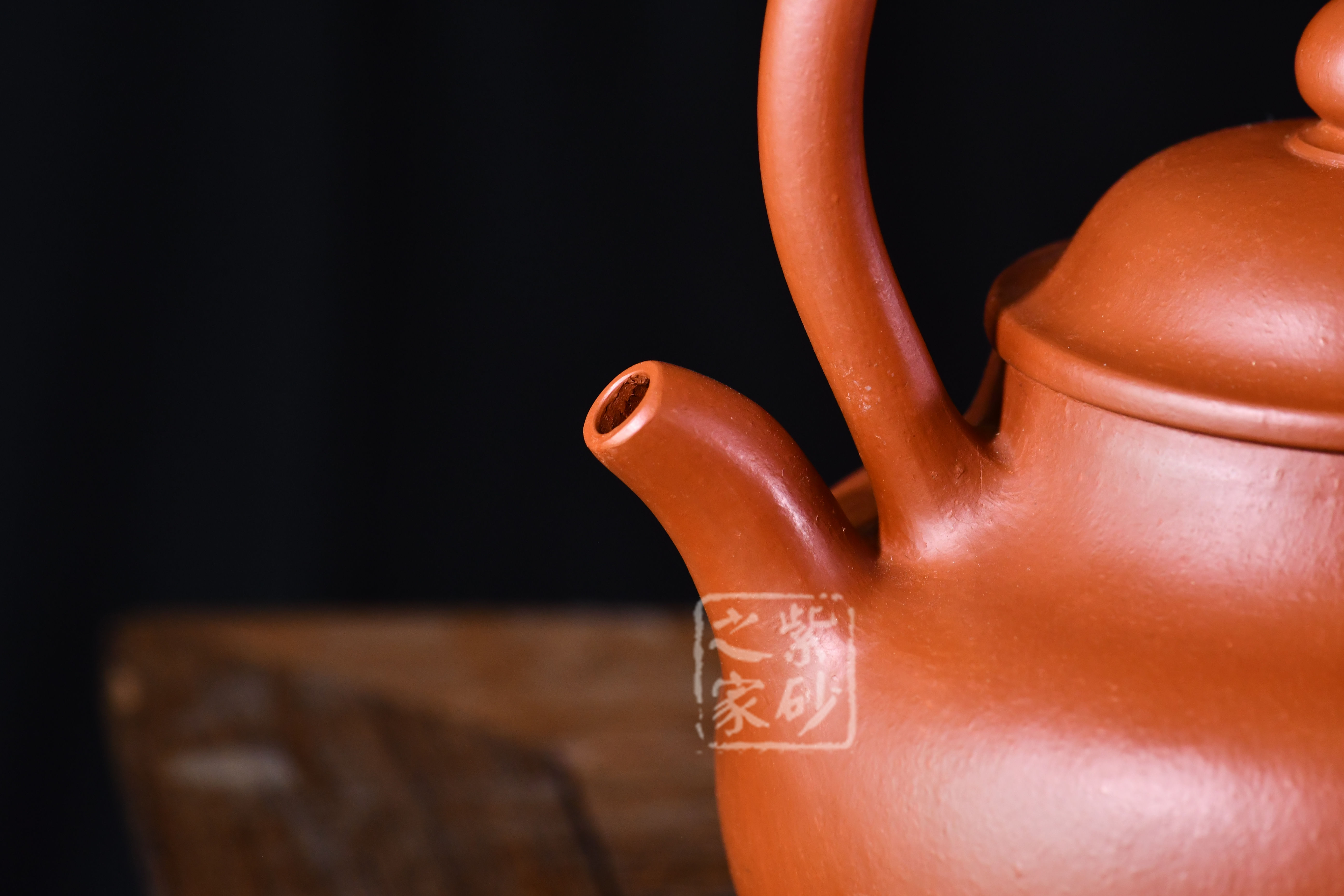 特點:質(zhì)感綿密、緊實細(xì)緻,持之扎實沉重、紅潤豔麗,泥中極品,無以倫比;泥胚含少許原礦顆粒,沖淋熱水后色變極大,呈紅中帶紫,養(yǎng)壺易現(xiàn)“包漿”之美。