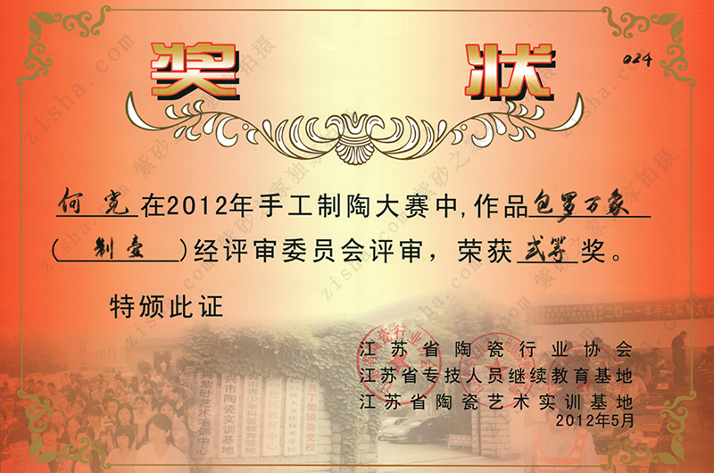 作品《包羅萬(wàn)象》榮獲2012年手工制陶大賽二等獎(jiǎng),