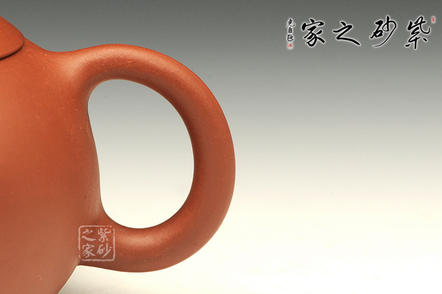 紅泥礦氧化鐵含量較高,優(yōu)者光潔明亮,橙中略見(jiàn)紅光,熱淋變色率較大,愈用愈紅;泡養(yǎng)一段時(shí)日,令人刮目相看。西施壺,傳統(tǒng)器型,全手工精制,精選原礦朱泥拍打而成;泥質(zhì)細(xì)膩,光韻流轉(zhuǎn)之間見(jiàn)光滑的膚質(zhì),甚是迷人。圓潤(rùn)的壺身,截蓋設(shè)計(jì),圓溜溜的的子。短短的翹嘴,直爽中透露出幾分嬌憨。倒把重心下沉,把底與壺嘴兩兩相望,意蘊(yùn)悠長(zhǎng)。此壺大小適宜,簡(jiǎn)約卻不簡(jiǎn)單, 令人玩味無(wú)窮。