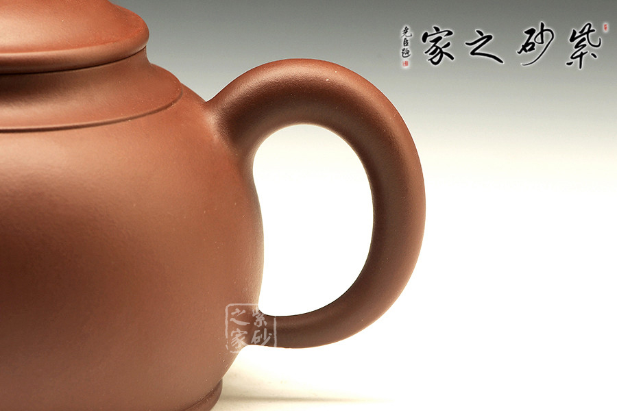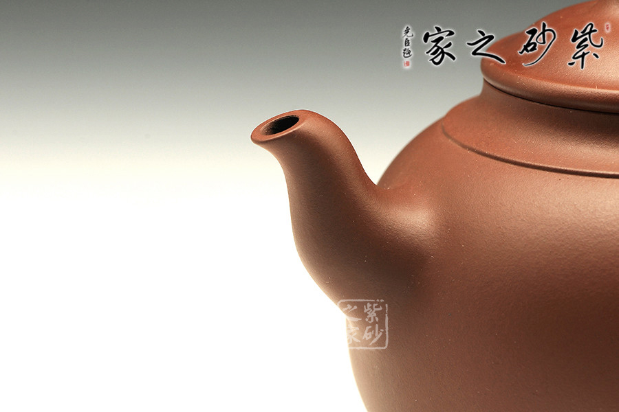 非淡泊無以明志,非寧靜無以致遠(yuǎn)。茶可清心,壺乃養(yǎng)凈。致遠(yuǎn)之妙,便在于此。壺體呈圓形,上窄下寬,壺腹略鼓,飽滿挺闊,氣韻動(dòng)人。胥出的彎流蜿蜒向上,體現(xiàn)不屈不撓的心智。全作比例恰當(dāng),造型別致,于端莊典雅之中呈現(xiàn)出古代文人最為推崇的君子氣息。