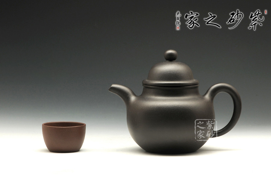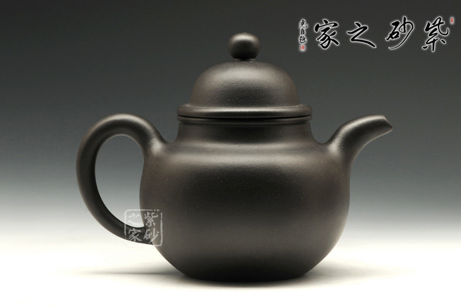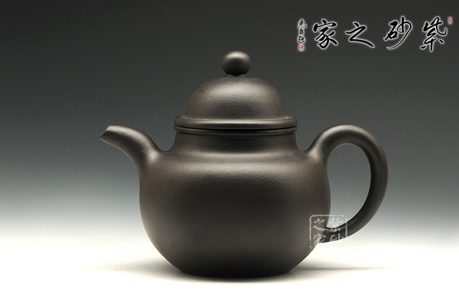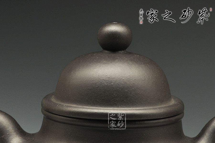 黑泥,其色如墨,似黑夜浩瀚天際,深不可測,泡茶醇和溫順敦厚,時間掌控容易。掇球壺以大、中、小三個球體重疊而成,壺身為大球,壺蓋為中球,壺鈕為小球,似小球掇于大球上。其按黃金分割比例巧妙布局安排,三個圓球均衡、和諧、對比、勻正,利用點線面的巧妙組合,利用各種線形的有機(jī)結(jié) 合,達(dá)到形體合理,構(gòu)成后珠圓玉潤的完美性。