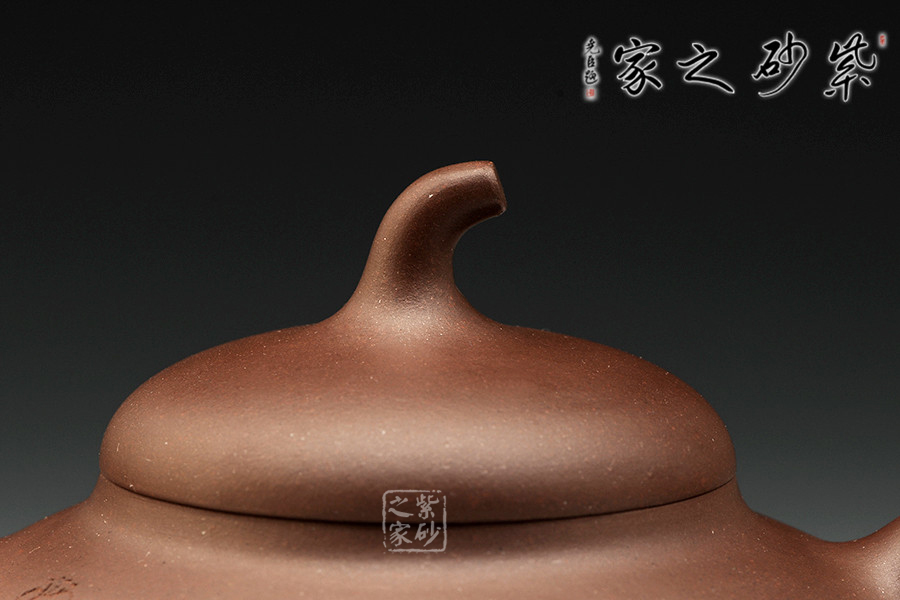 茄段壺取材于茄子,其形制渾然的田園樸意,其意韻也渾然充滿自然之風(fēng),簡潔的器型,優(yōu)雅而不失藝術(shù)魅力的形制,使得茄段壺流傳至今廣受歡迎;此壺采用原礦紫泥制成,泥料極為精致,相得益彰,甚是漂亮;壺身飽滿圓潤,截蓋設(shè)計與壺身結(jié)合平整,顯得豐腴圓潤,暗接壺鈕呈瓜蒂造型,精巧別致,自然傳神;暗接一彎流壺嘴精巧胥出,嘴口圓潤略低,出水爽利,耳形端把粗細(xì)適中,持握舒適。