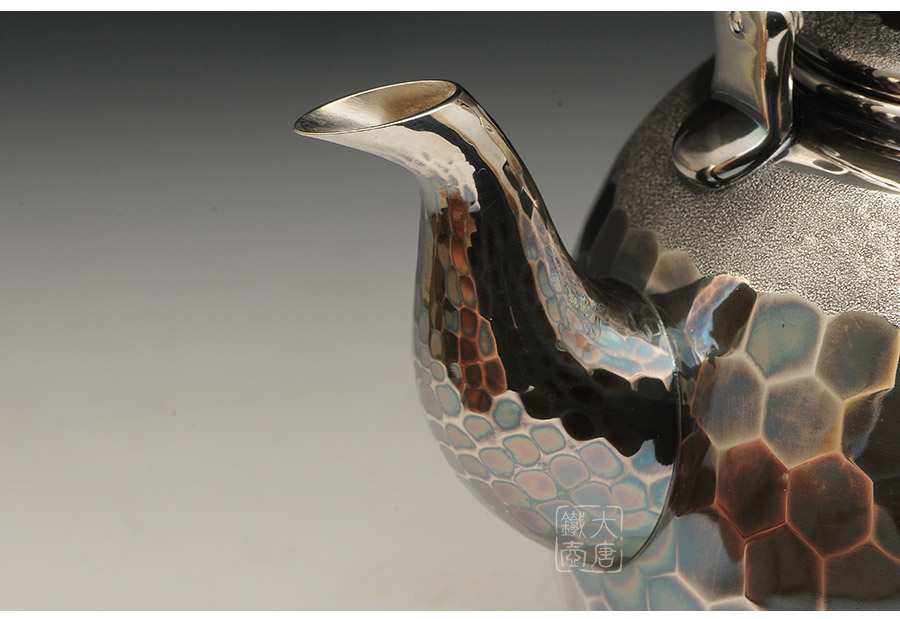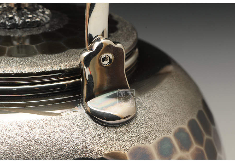 日本金工大師早川進(jìn)匠心之作,經(jīng)典福壽龜甲紋,既具齊整規(guī)矩之感,又富于變化之美。整器為孤高嚴(yán)肅的紫金色調(diào),自有一種渾然天成的名家風(fēng)范。