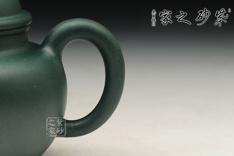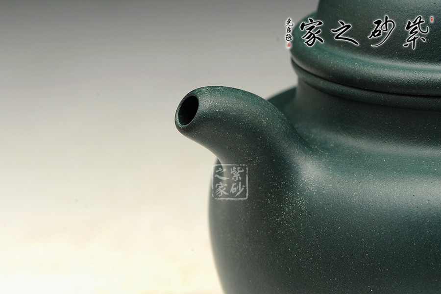 此壺為經(jīng)典器型掇球壺,壺身是一個大球,挺拔俊秀,扛起了壺流與壺把,壺蓋略呈拱形,壺鈕呈圓球狀,壺蓋呈半球狀,鈕、蓋、身猶如三球重疊。一彎流胥出自然,壺口略收,出水成股;耳把纖細(xì)之中富于變化,端握舒適;口蓋銜接緊密,氣密性極佳。