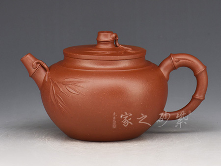 研究員級(jí)高工朱建偉弟子蔣芳芳,擅長(zhǎng)小品壺制作,功底扎實(shí),作品性?xún)r(jià)比高。此壺結(jié)構(gòu)嚴(yán)謹(jǐn),造型優(yōu)美,仿若一個(gè)彬彬有禮的紳士。在壺嘴,壺把,壺鈕的地方用竹段做裝飾,雖曲而不柔,既體現(xiàn)了竹子自然生長(zhǎng)的姿態(tài),有蘊(yùn)含了不屈的生命力,壺嘴上順勢(shì)伸張出纖細(xì)的竹枝,在壺身上裝飾成淺淺的浮雕竹枝紋,若隱若現(xiàn),將竹枝隨風(fēng)飄揚(yáng)的另一番柔情展露出來(lái),與壺體本身及其流把的竹節(jié)形成剛?cè)岵?jì)的對(duì)比,一小節(jié)竹段橫截為鈕,極有玲瓏玲瓏娟秀之風(fēng)雅,作品有君子之風(fēng)。