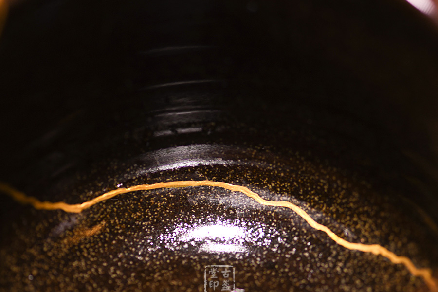 釉水活潤(rùn),釉層均勻,紋理清晰,將盞心朝外置于光照下觀看,木葉圖案栩栩如生。