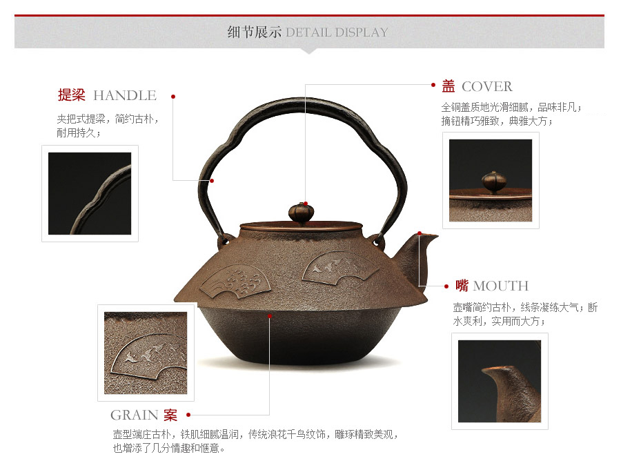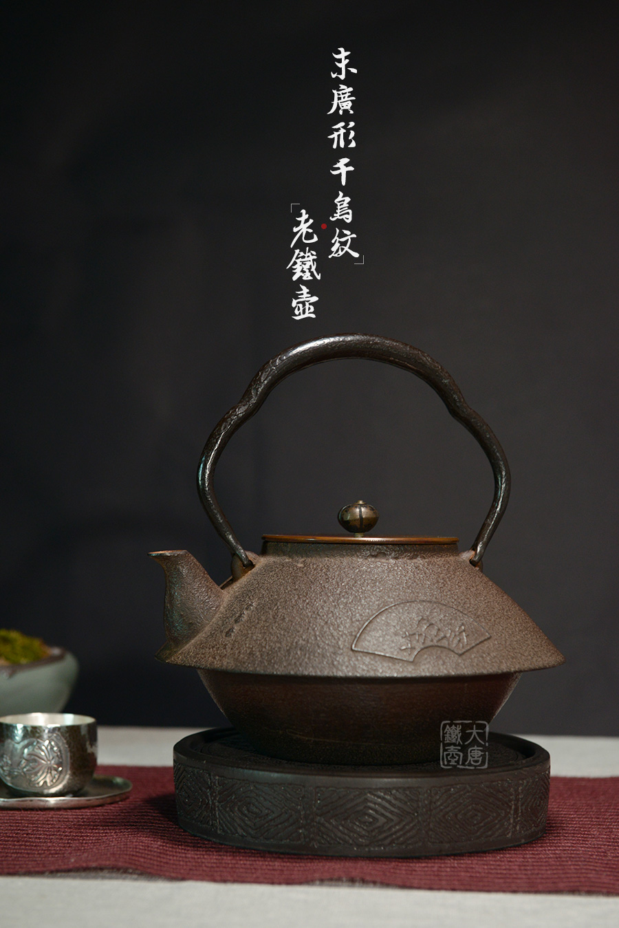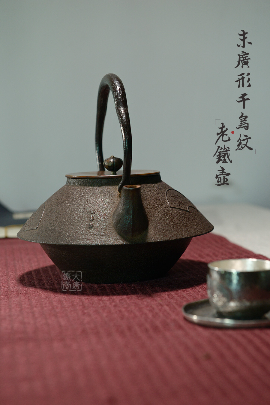 十四代菊地正直匠心手作,純手工制作,型制端莊沉穩(wěn),鐵肌厚重古樸,壺身浪花飛鳥紋飾雕琢精巧,雅致古樸。