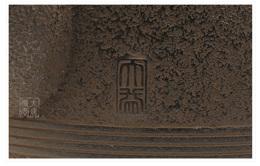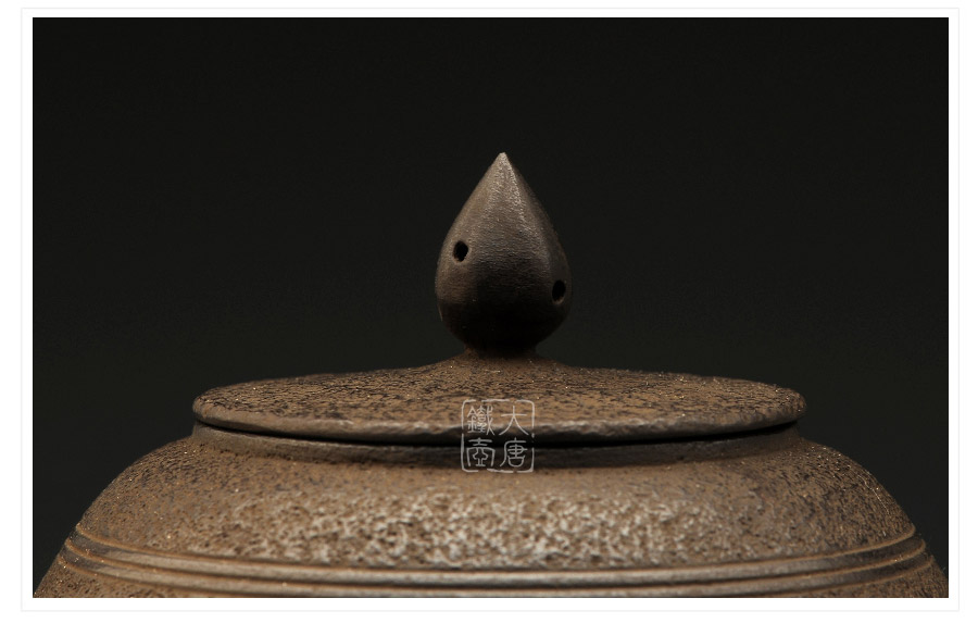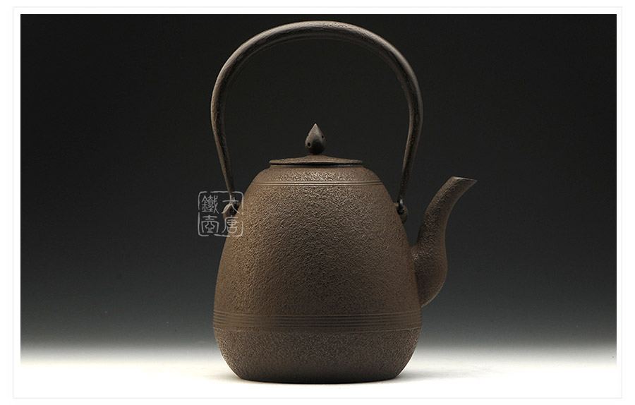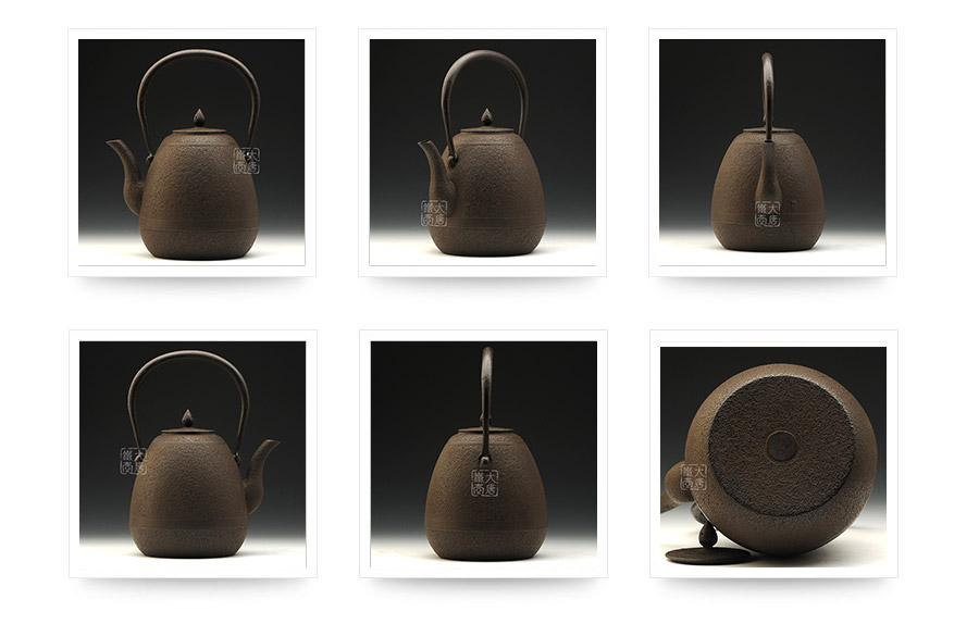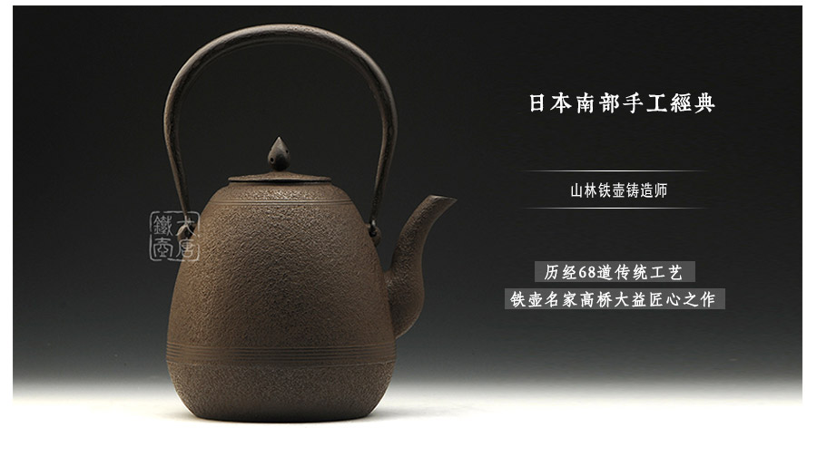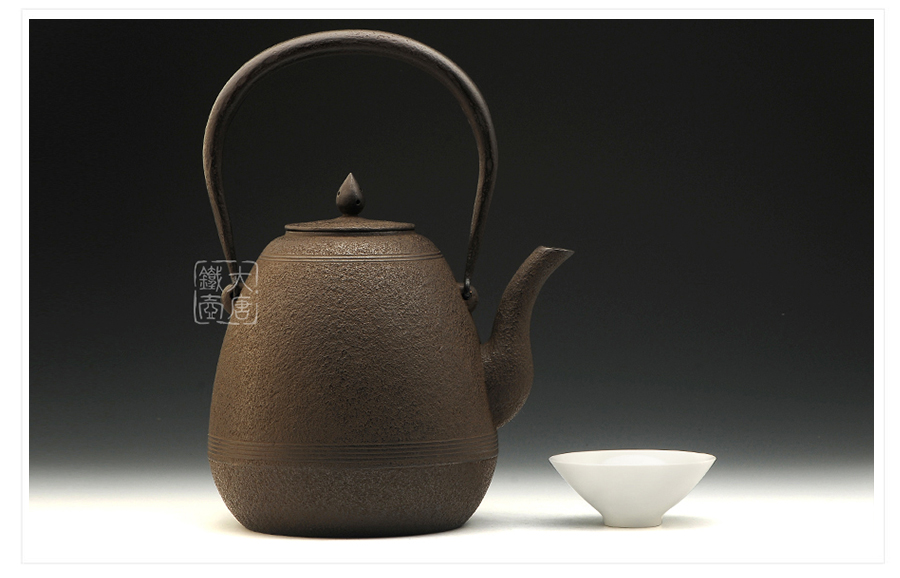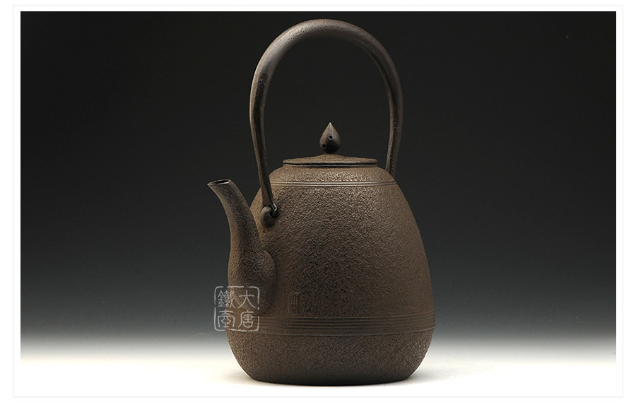 山林鐵壺鑄造師高橋大益作品,高橋大益的作品喜歡追求自然之美,肌理細(xì)膩,采用了純?nèi)帐降膭?chuàng)作手法和理念,非常契合日本茶道的禪宗精神。壺身水滴形,飽滿圓潤(rùn),更顯精致美觀。