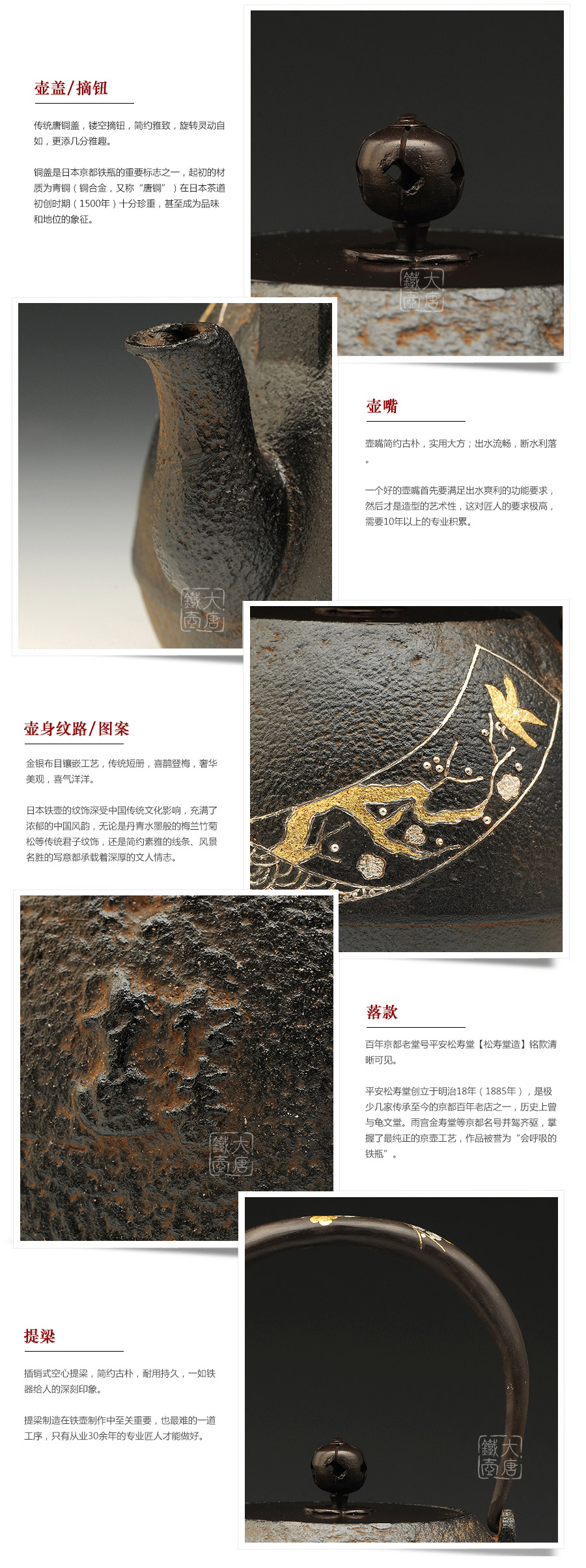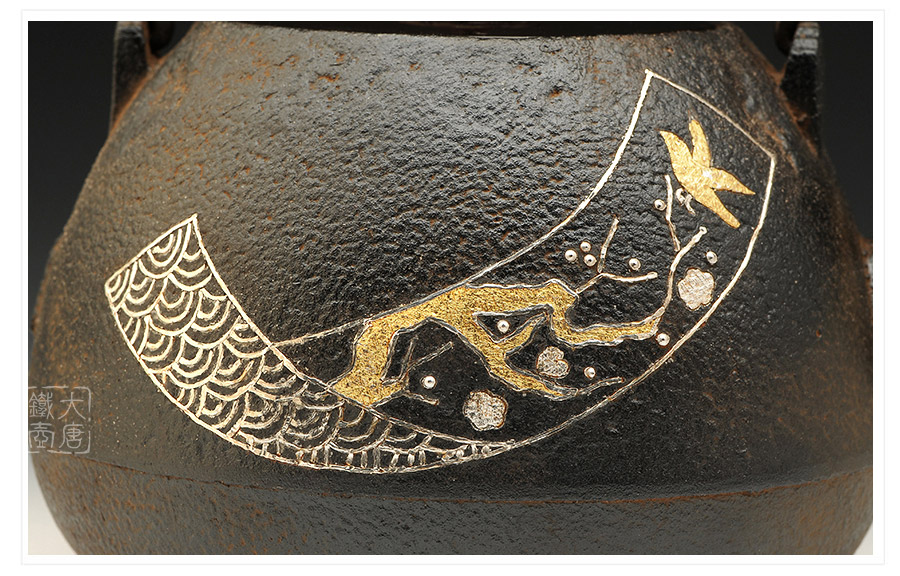 現(xiàn)在平安松壽堂已傳為4代目,致力于京都鐵瓶的制作和表面鑲嵌工藝的研究。