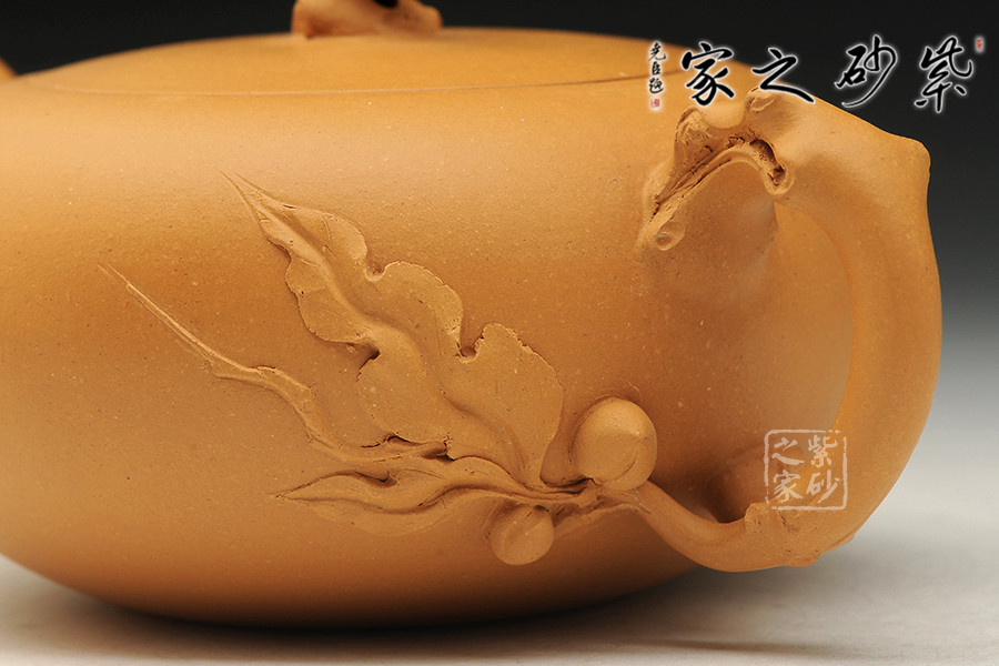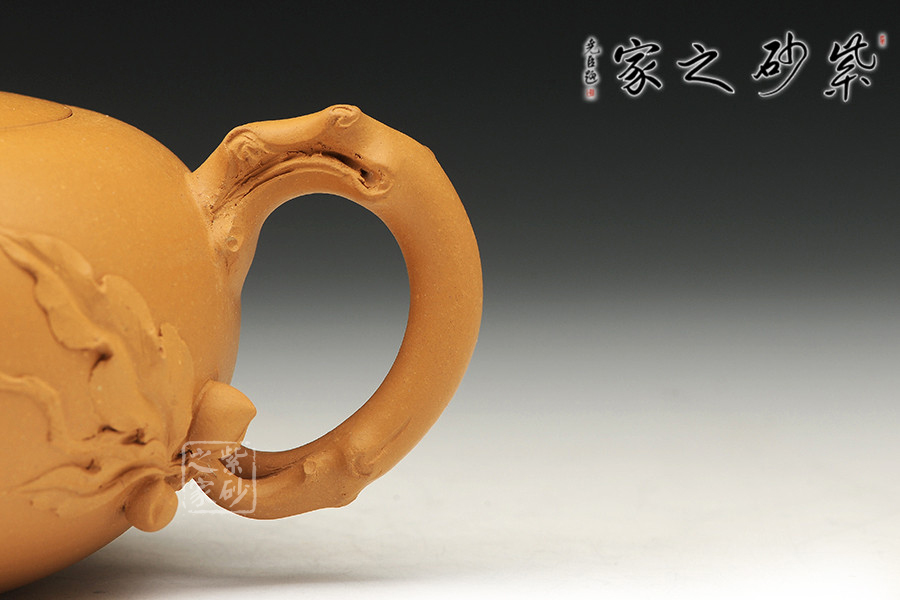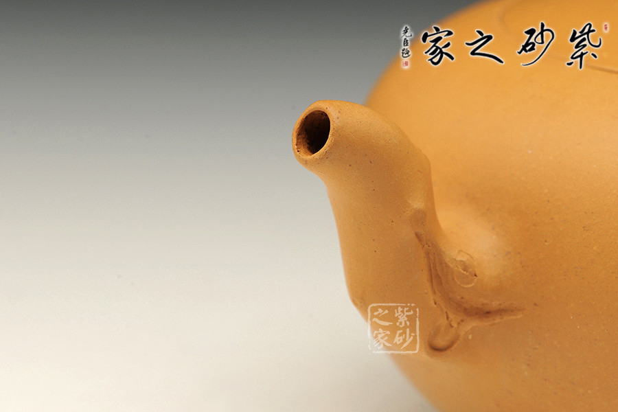 泥性:感甜嫩綿密,質(zhì)堅(jiān)而溫潤(rùn),呈近田黃色調(diào),為江蘇宜興趙莊山系朱泥礦~黃石黃之共生礦,經(jīng)挑揀練製而成,因含鐵量只達(dá)6%左右,致陶之后呈“金田黃色”。