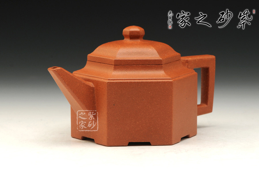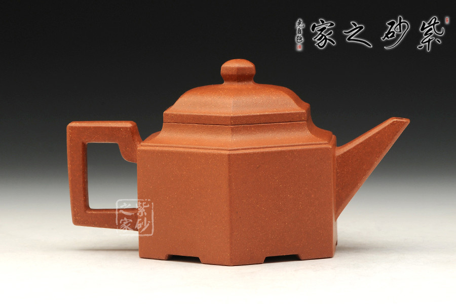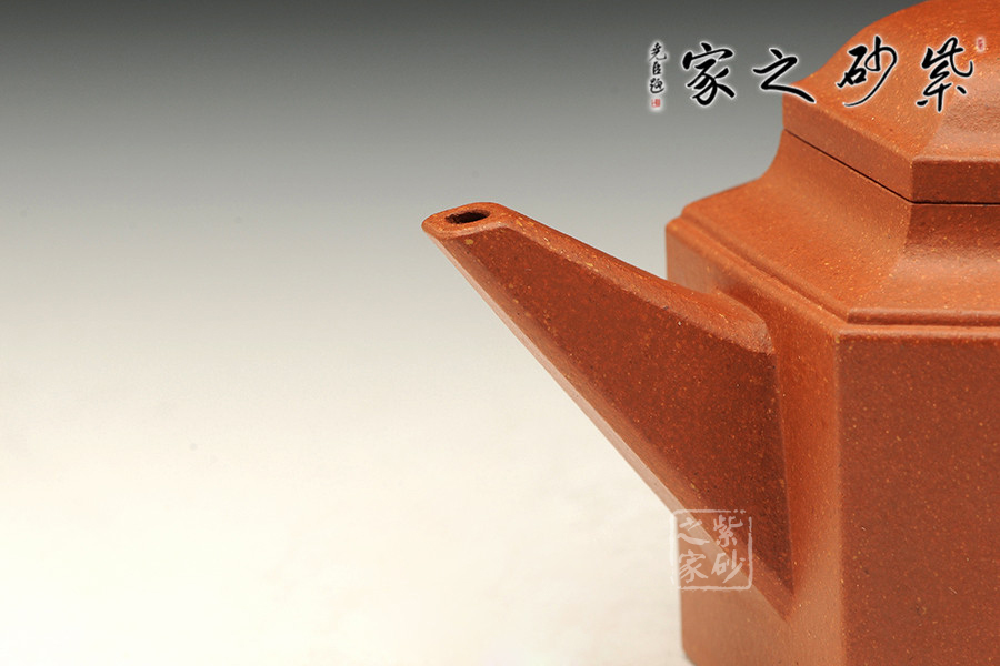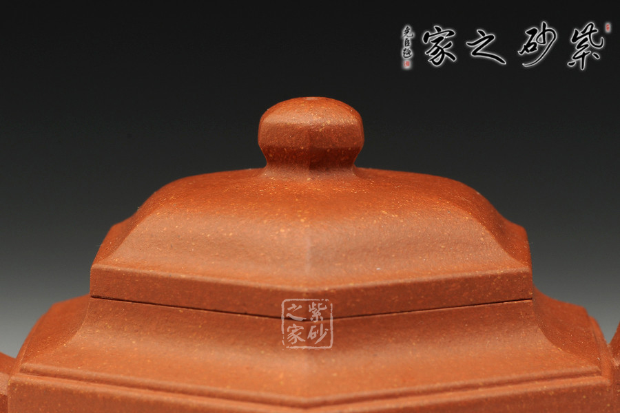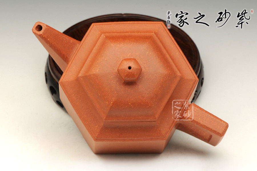 此六方肩線壺,雖為光貨,然規(guī)整的六方壺型制作,比例精準(zhǔn),線條緊湊流暢,整體一氣呵成,沈韻悠然,足見(jiàn)制壺者精湛的制壺工藝。壺口,短壺頸皆是規(guī)整的六方形,對(duì)稱工整,坡肩造型極其優(yōu)美,干脆利落過(guò)渡自然。壺鈕,壺蓋微鼓,不失六方精氣神。六條棱線延伸至壺底形成足,折轉(zhuǎn)落地穩(wěn)重大氣,泰然自若,整個(gè)壺制作嚴(yán)謹(jǐn),棱面流暢,鑲接工整,值得收藏。