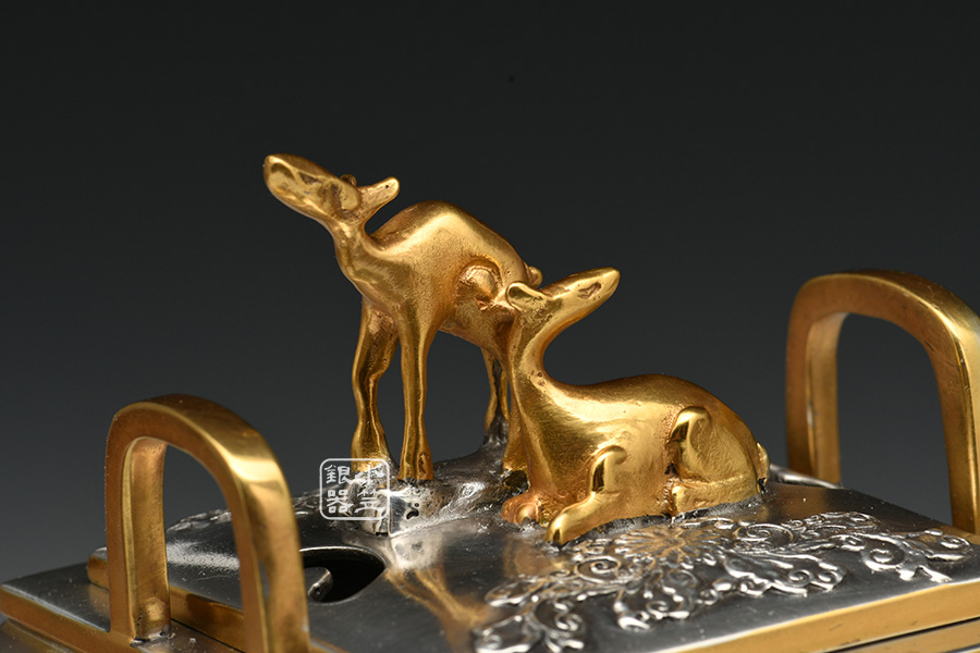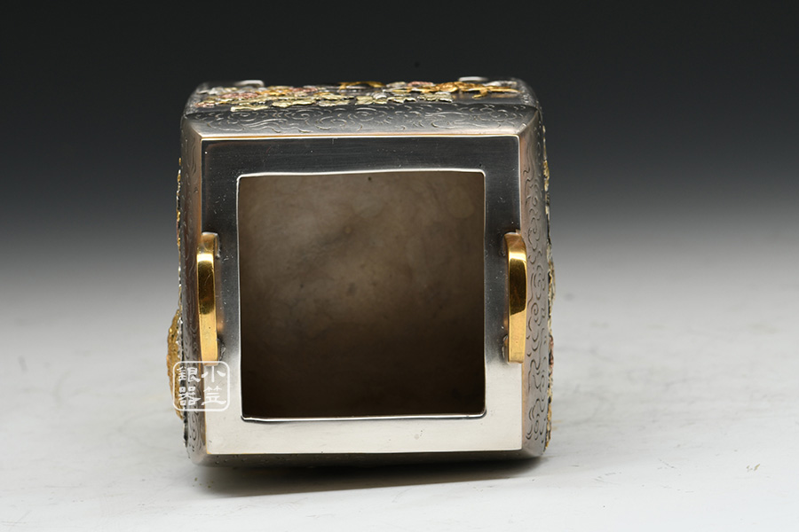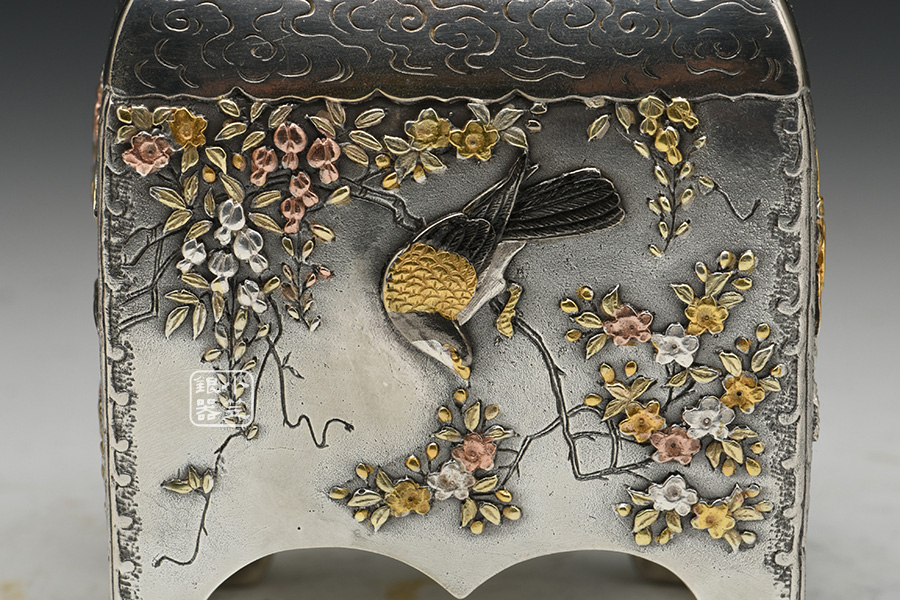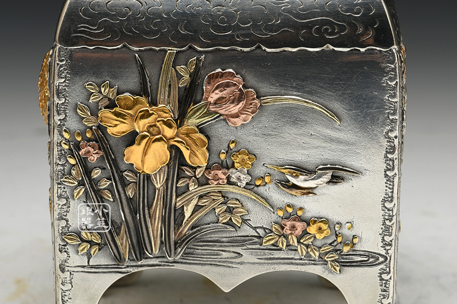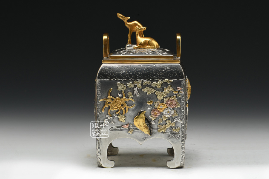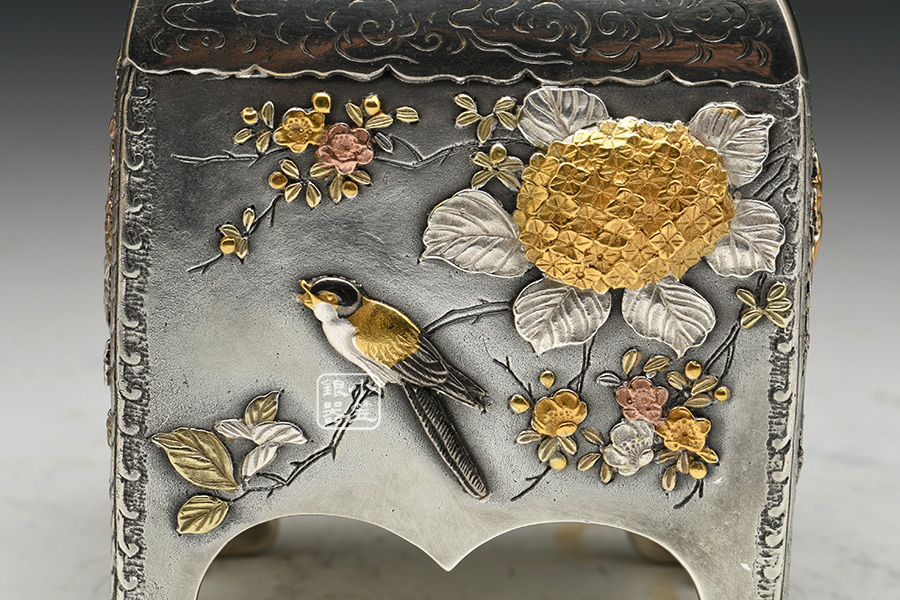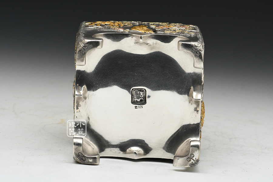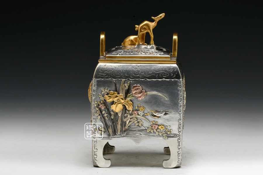 角型花鳥香爐 純銀喜泉堂制作 [ 編號:53697 ]