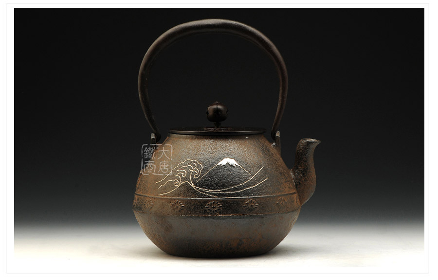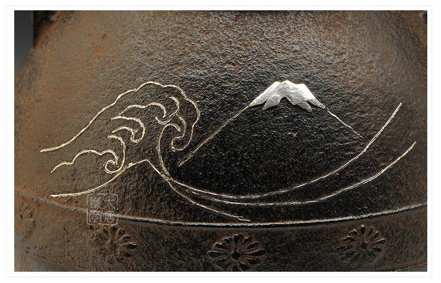 松壽堂 富士浪花銀鑲嵌鐵壺 [ 編號:53806 ]