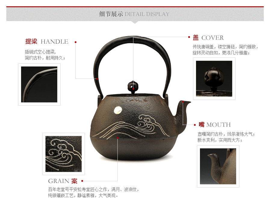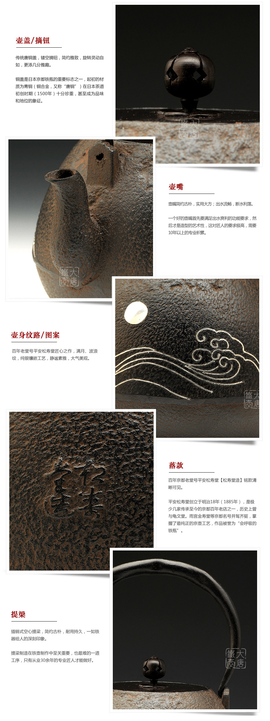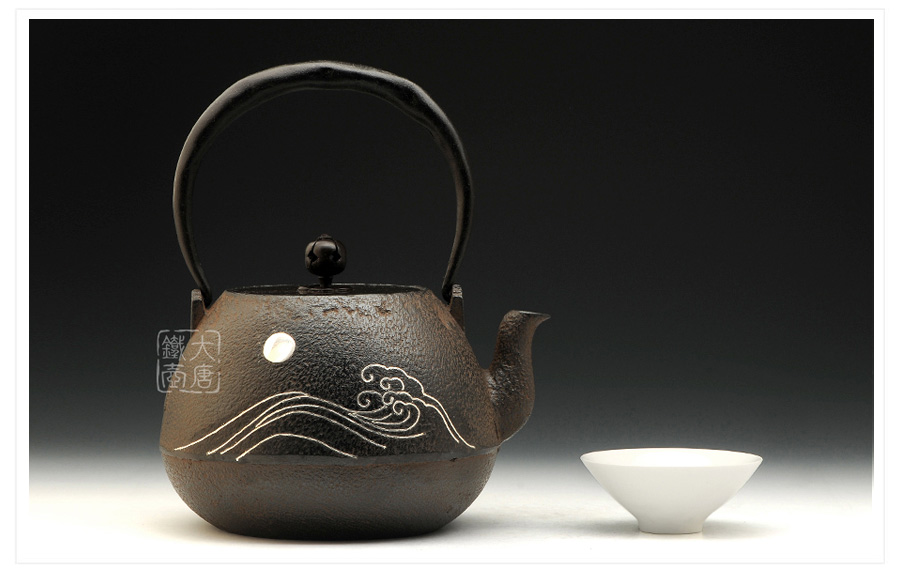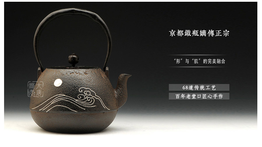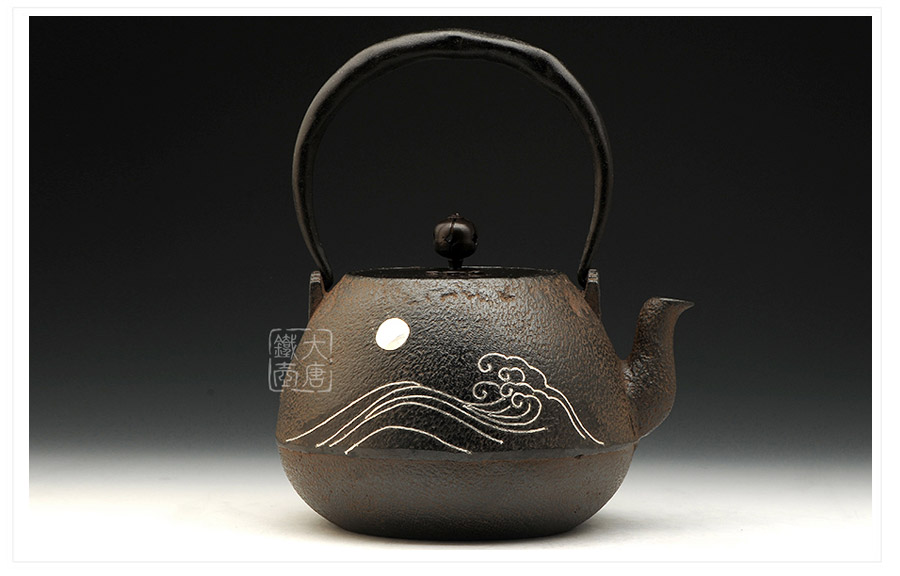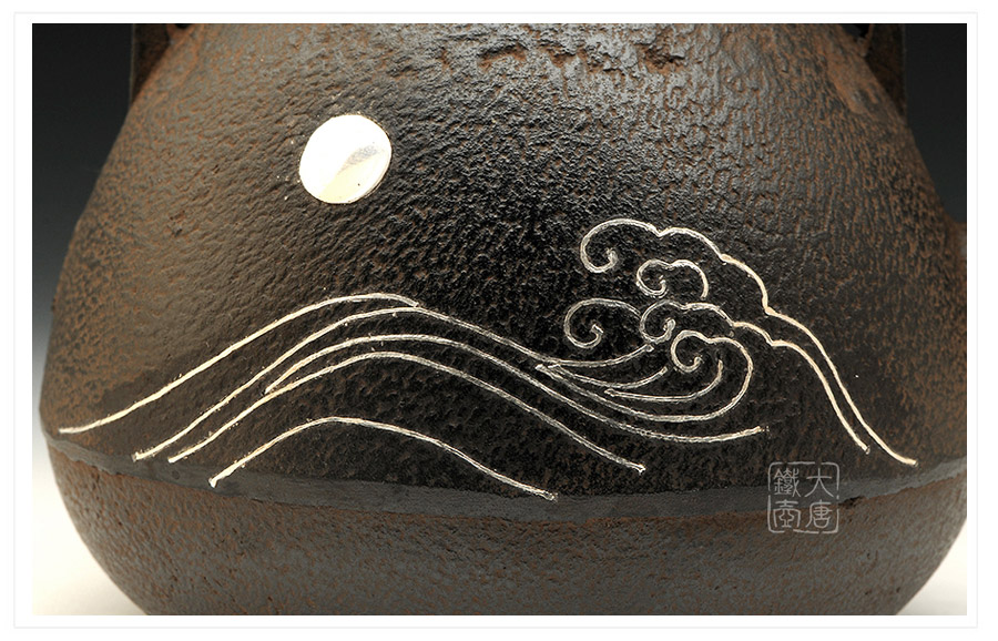京都鐵瓶嫡傳正宗,百年老堂號(hào)平安松壽堂匠心之作,滿月、波浪紋,純銀鑲嵌工藝,靜謐素雅,大氣美觀。