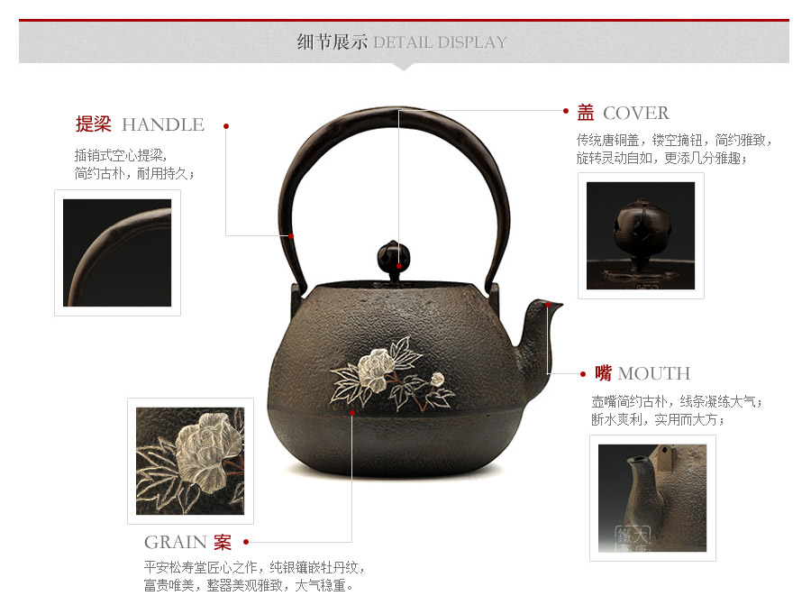 百年京都老堂號平安松壽堂匠心之作,純銀鑲嵌牡丹紋,富貴唯美,整器美觀雅致,大氣穩(wěn)重。
