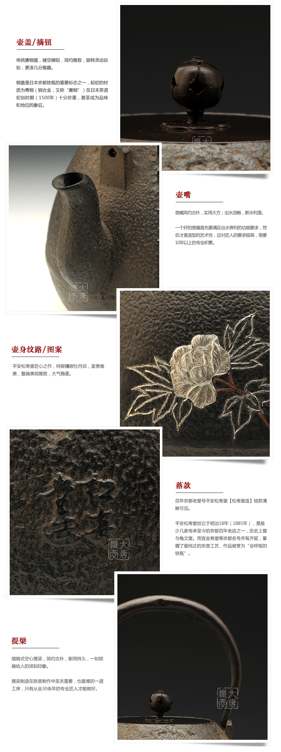 現(xiàn)在平安松壽堂已傳為4代目,致力于京都鐵瓶的制作和表面鑲嵌工藝的研究。