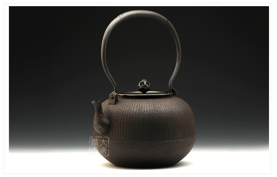 畠春齋 丸形筋紋鐵壺(大) [ 編號:53823 ]