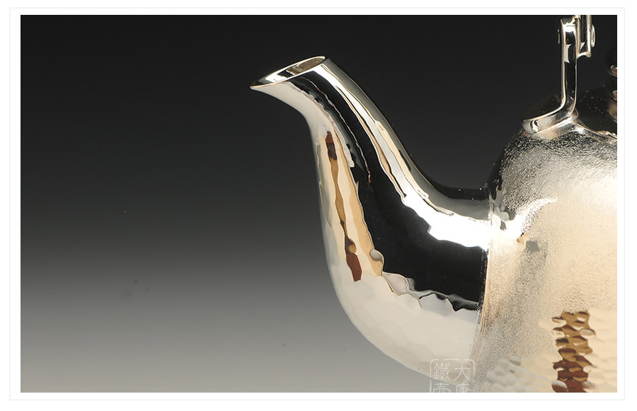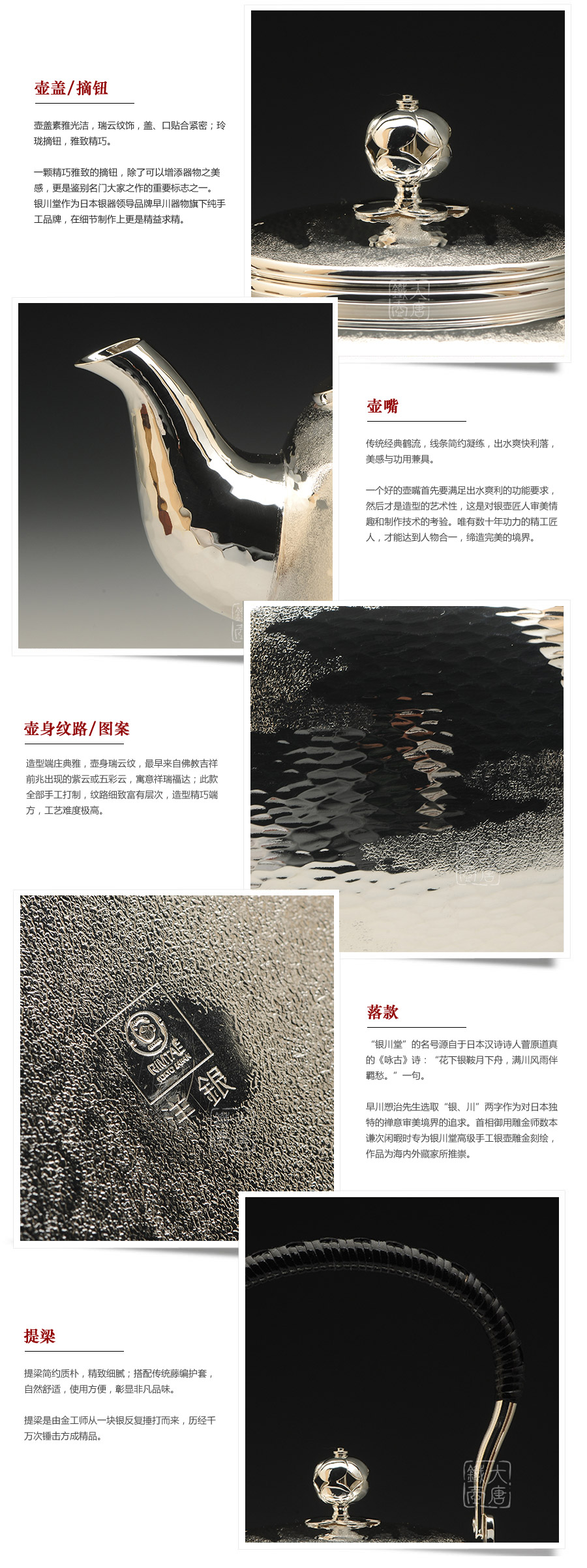 二代堂主早川進精工手作,造型端莊典雅,壺身瑞云紋,最早來自佛教吉祥前兆出現(xiàn)的紫云或五彩云,寓意祥瑞福達;此款全部手工打制,紋路細致富有層次,造型精巧端方,工藝難度極高。