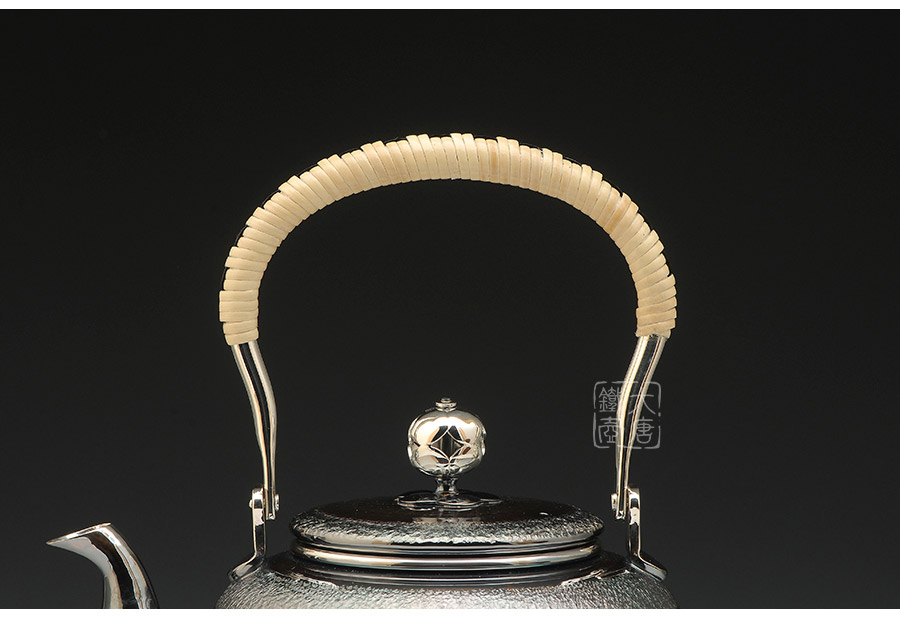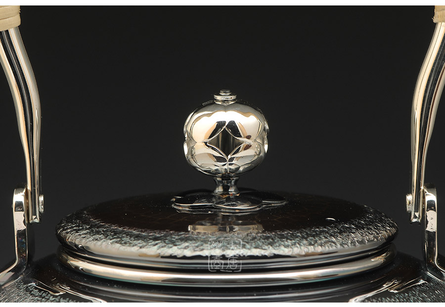 銀川堂精工手作,造型端莊典雅,采用純手工鎚目工藝在同一作品中應用兩種不同的槌目紋飾,且交融過渡自然勻稱,極為罕見,展現(xiàn)出高超的工藝水準。