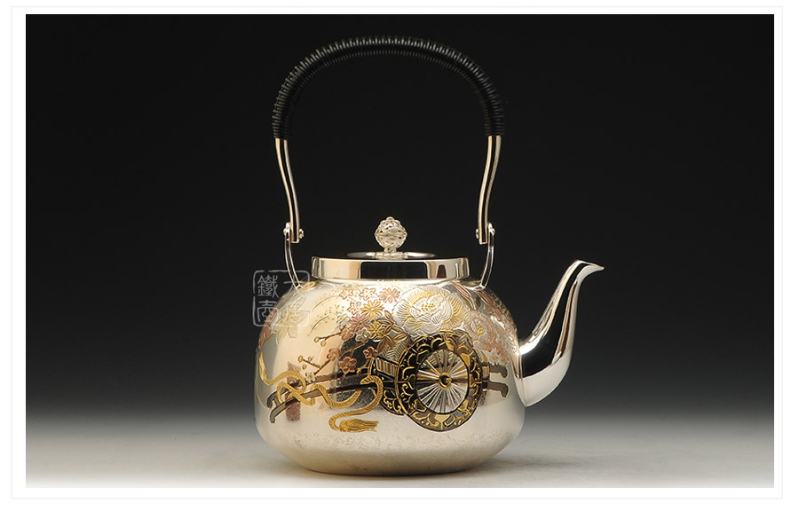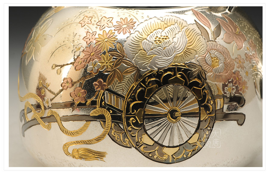 大淵銀器 純銀雕金銀壺 花車 [ 編號(hào):54021 ]