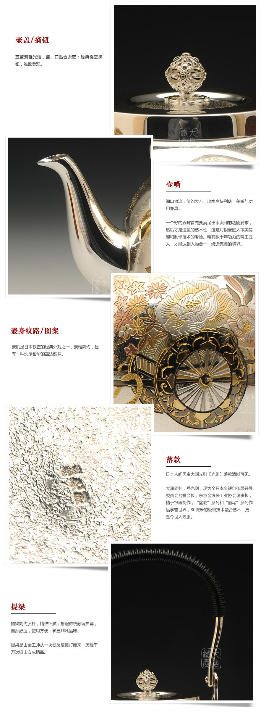 大淵銀器是日本人間國寶級(jí)的頂級(jí)金銀器制作商,多次為天皇和日本皇室慶典進(jìn)獻(xiàn)手工金銀器藝術(shù)品,獲得盛譽(yù)。