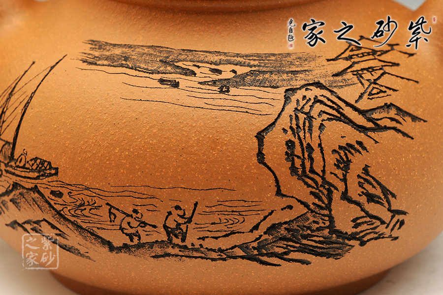 通體裝飾: 裝飾: 山水 裝飾者:程鵬 裝飾內(nèi)容: 遠(yuǎn)浦歸帆