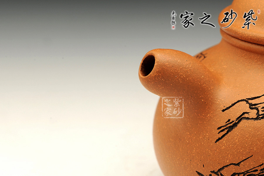 光貨離不開裝飾。俗話說“壺隨字貴,字隨壺傳”:光壺不刻字,就是一把光壺;壺上面刻了大師、名人的字,一把壺的含金量就高了,收藏價(jià)值就更高,升值潛力就更大。王福君與中國工藝美術(shù)大師譚泉海合作最多,其次是徐安碧、鮑志強(qiáng)、毛國強(qiáng)(均為中國工藝美術(shù)大師、中國陶瓷藝術(shù)大師)。