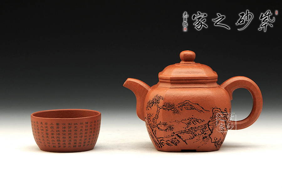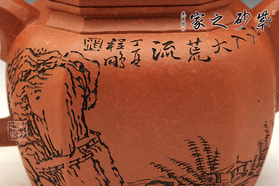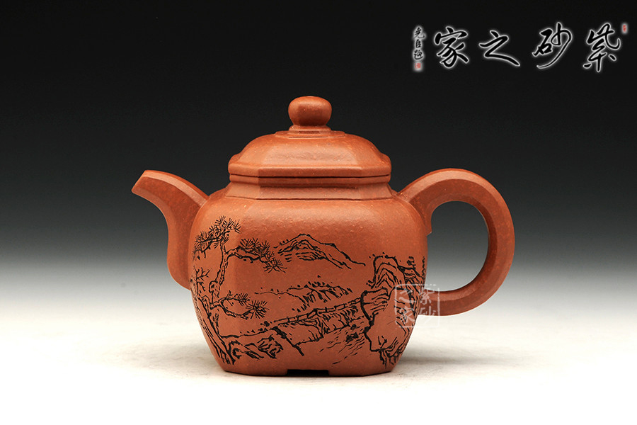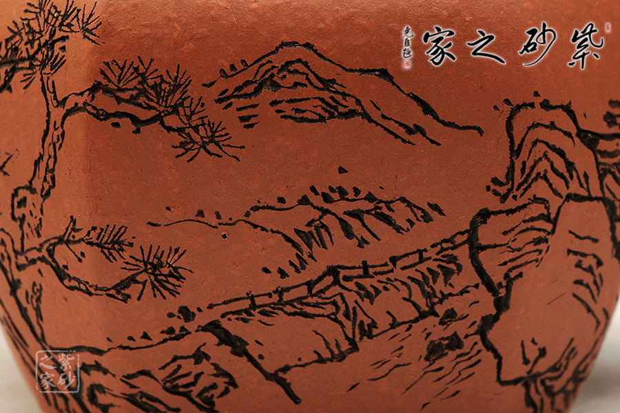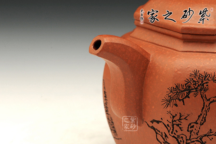 光貨離不開裝飾。俗話說“壺隨字貴,字隨壺傳”:光壺不刻字,就是一把光壺;壺上面刻了大師、名人的字,一把壺的含金量就高了,收藏價(jià)值就更高,升值潛力就更大。王福君與中國(guó)工藝美術(shù)大師譚泉海合作最多,其次是徐安碧、鮑志強(qiáng)、毛國(guó)強(qiáng)(均為中國(guó)工藝美術(shù)大師、中國(guó)陶瓷藝術(shù)大師)。