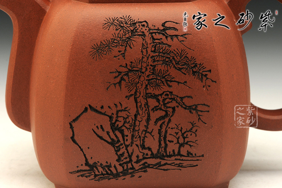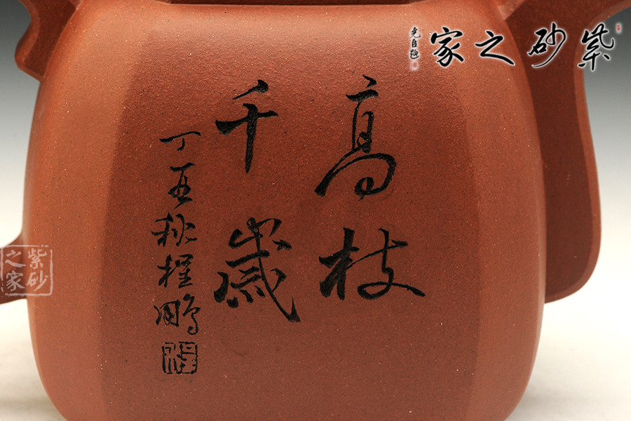 光貨離不開(kāi)裝飾。俗話說(shuō)“壺隨字貴,字隨壺傳”:光壺不刻字,就是一把光壺;壺上面刻了大師、名人的字,一把壺的含金量就高了,收藏價(jià)值就更高,升值潛力就更大。王福君與中國(guó)工藝美術(shù)大師譚泉海合作最多,其次是徐安碧、鮑志強(qiáng)、毛國(guó)強(qiáng)(均為中國(guó)工藝美術(shù)大師、中國(guó)陶瓷藝術(shù)大師)。