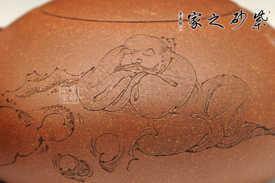 泥性:原礦因含緞泥、紅泥、紫泥等諸多共生礦,陶之后,于深沉之“橙紅色”底上,滿佈五彩斑斕的粗細(xì)、深淺之紅、黃星斑點(diǎn)。
