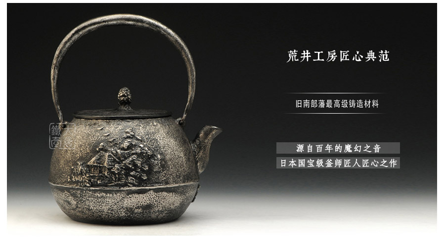 荒井工房是當代山形地區(qū)的又一個傳統(tǒng)鐵器堂口,自創(chuàng)業(yè)以來始終奉行“高品質(zhì)、多品種、無謂產(chǎn)量”的準則,堅持沿用最傳統(tǒng)鐵瓶的制作工藝,一個模具只制作一把鐵瓶,不懈追求鐵壺藝術(shù)的極致之美……