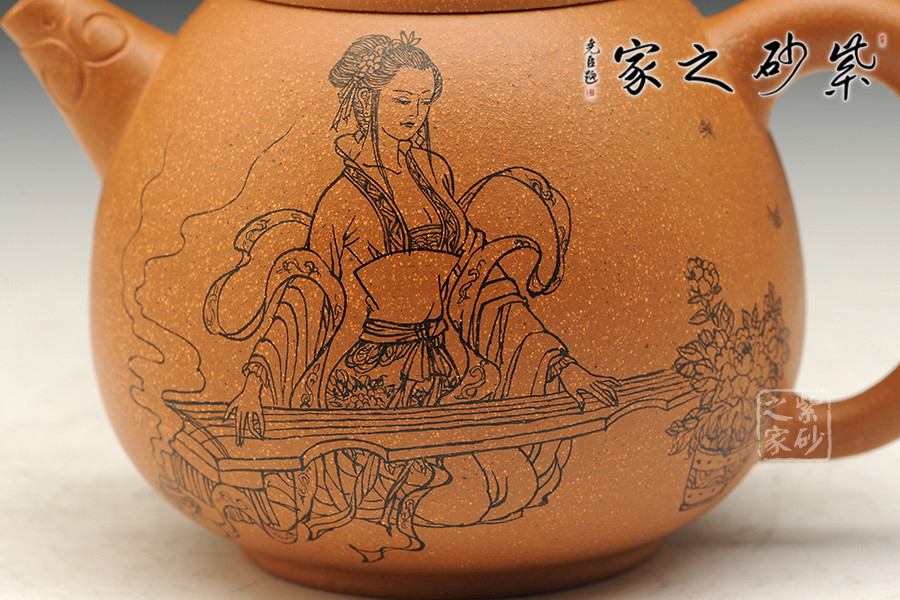 A面: 裝飾: 美女撫琴 裝飾者:趙永正 裝飾內(nèi)容: 精細的線條,有力的筆觸,刻畫出美女在牡丹花間撫琴,其優(yōu)雅琴聲引來蝴蝶,為之伴舞。