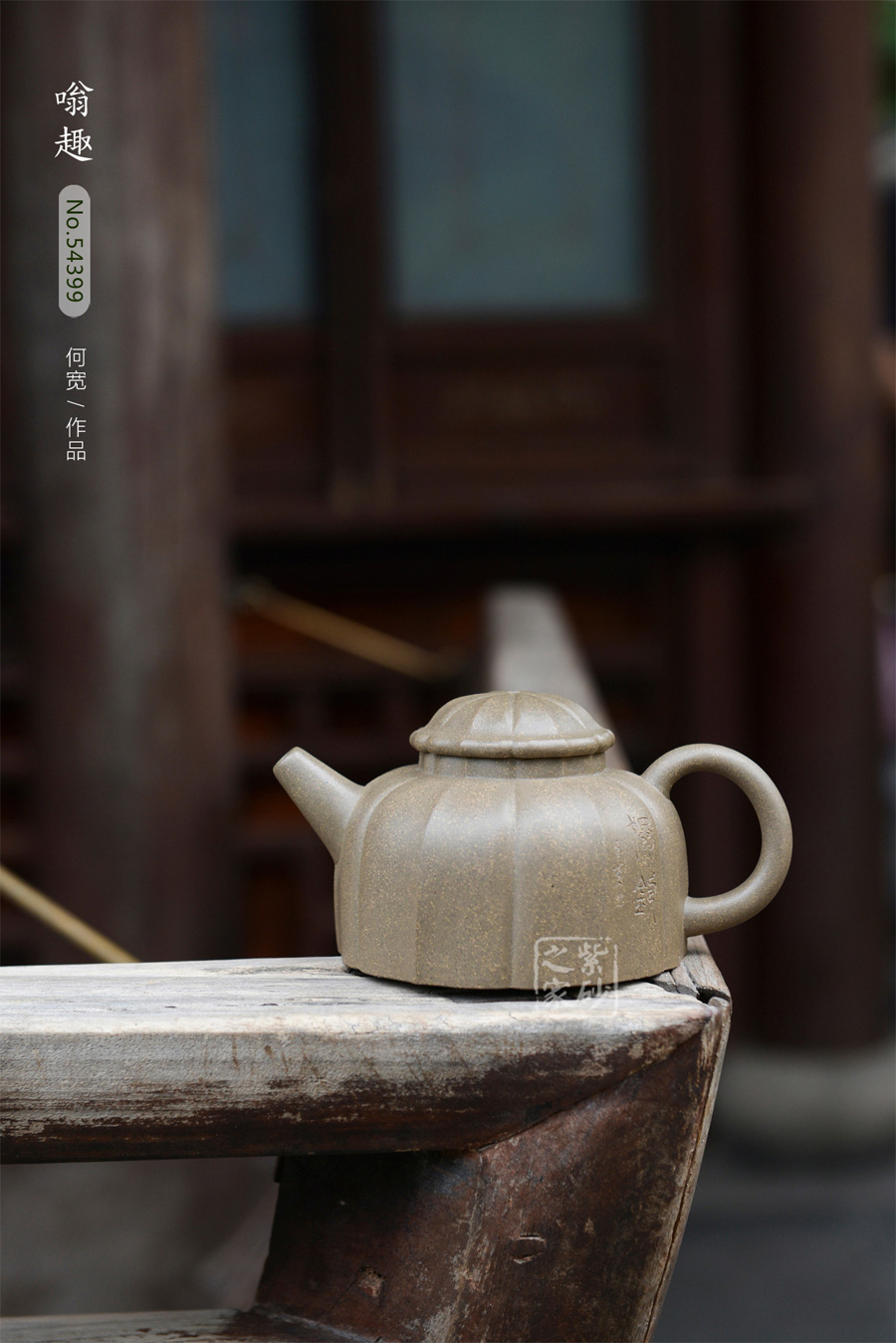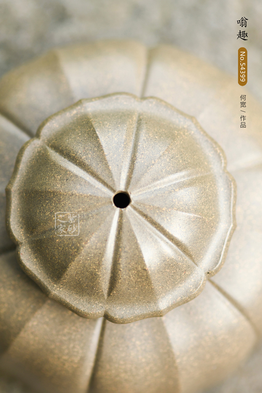 作品由上自下觀之,蓋及壺體的筋囊一一對應,宛若層層花瓣含蕊待放,整體造型協(xié)調(diào)統(tǒng)一而不失美感,極其生動。其青段泥材質(zhì),色澤古雅純正,給人一種雅致非凡之感,大氣古樸之味盡顯。