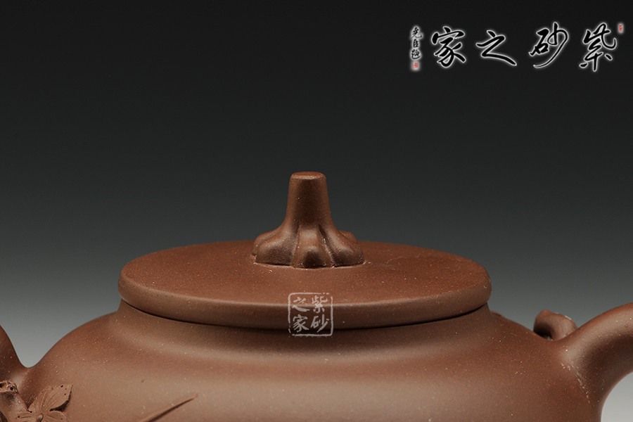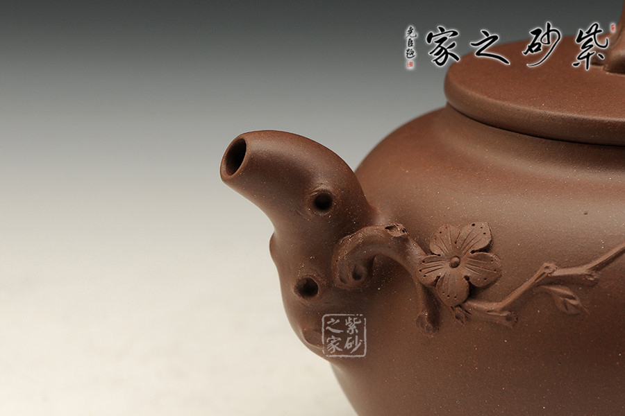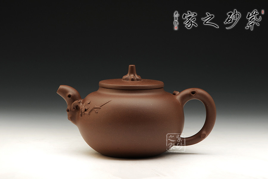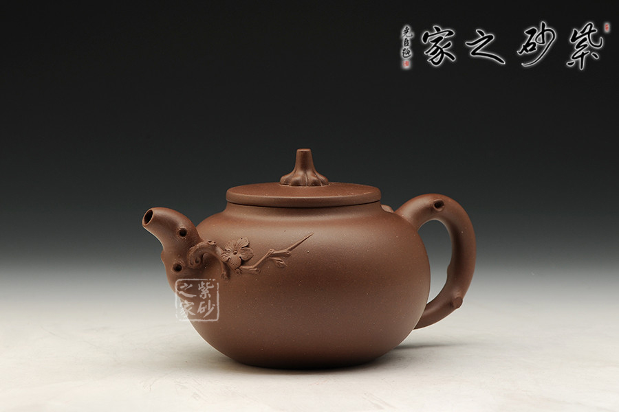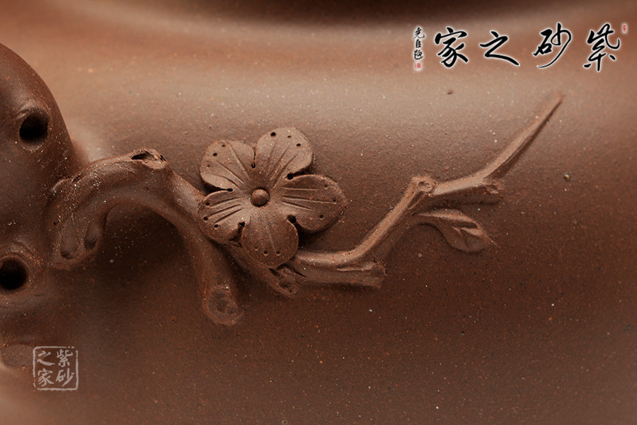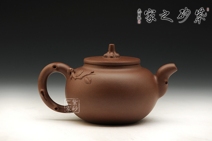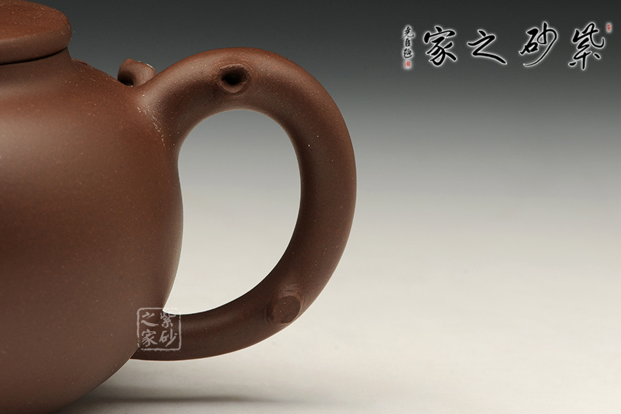 一廠60年代老紫泥手工制作,泥質(zhì)純正,作品老味十足。且一廠老紫泥存量有限,做一少一。此作保留傳統(tǒng)壺型的韻味,典雅古樸,壺身極具張力,飽滿的造型充滿力道;客戶科學(xué)、把以樹干為型,做工逼真,將樹的形態(tài)捏塑得到位;瓜蒂為鈕,筋紋凸凹有致。整器做工無可挑剔,堪稱當(dāng)代精品。